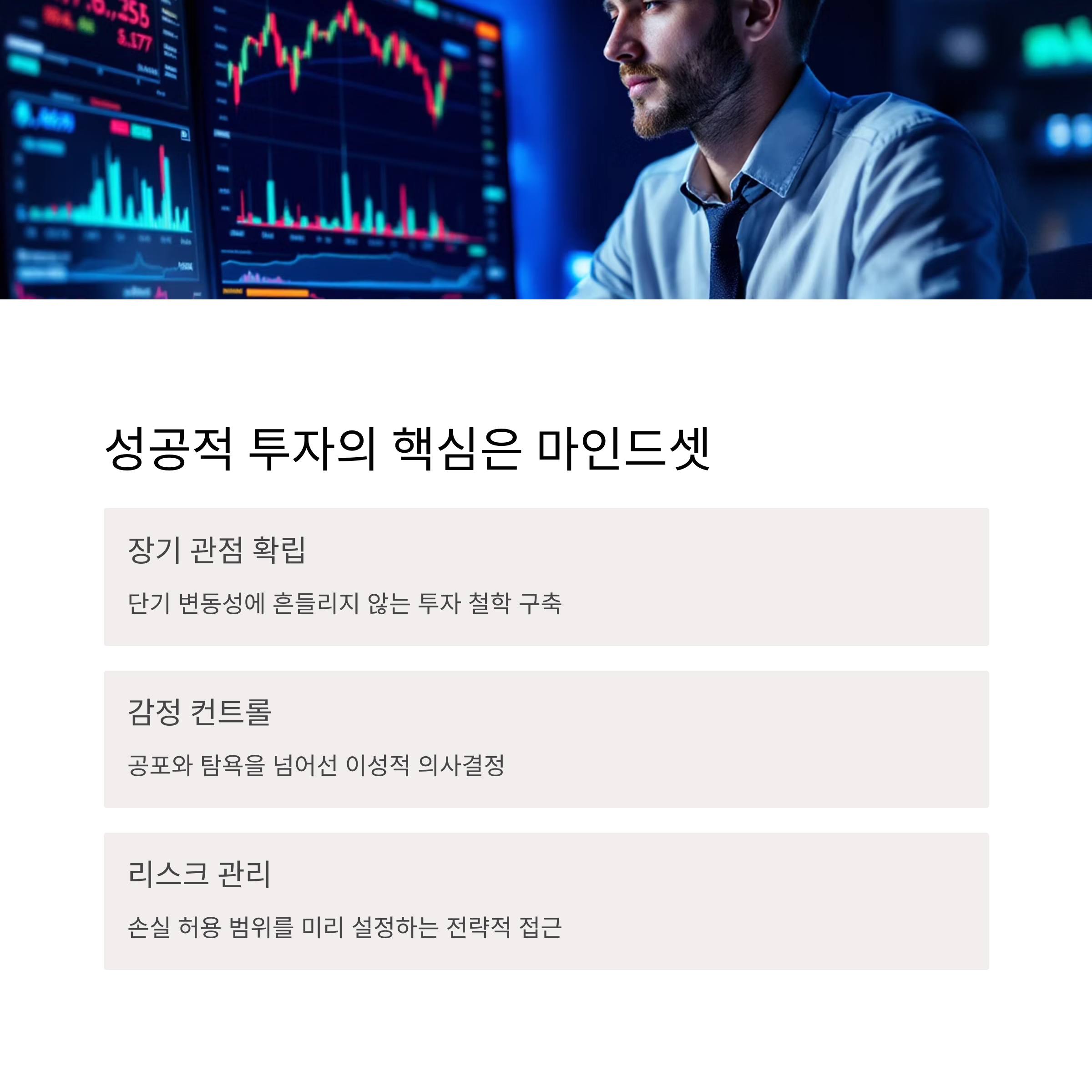 초보 투자자들이 가장 자주 하는 실수가 '단기간에 큰돈 벌기'를 기대하는 것입니다. 그러나 실제 성공한 투자자들은 꾸준함과 인내심을 무기로 합니다. 시장의 변동성은 불가피하며, 그 안에서도 냉정을 유지하는 것이 필요합니다. 감정적으로 매수·매도 하지 않도록 투자 원칙을 문서화하고, 손절 및 익절 기준도 미리 정해두는 것이 좋습니다.