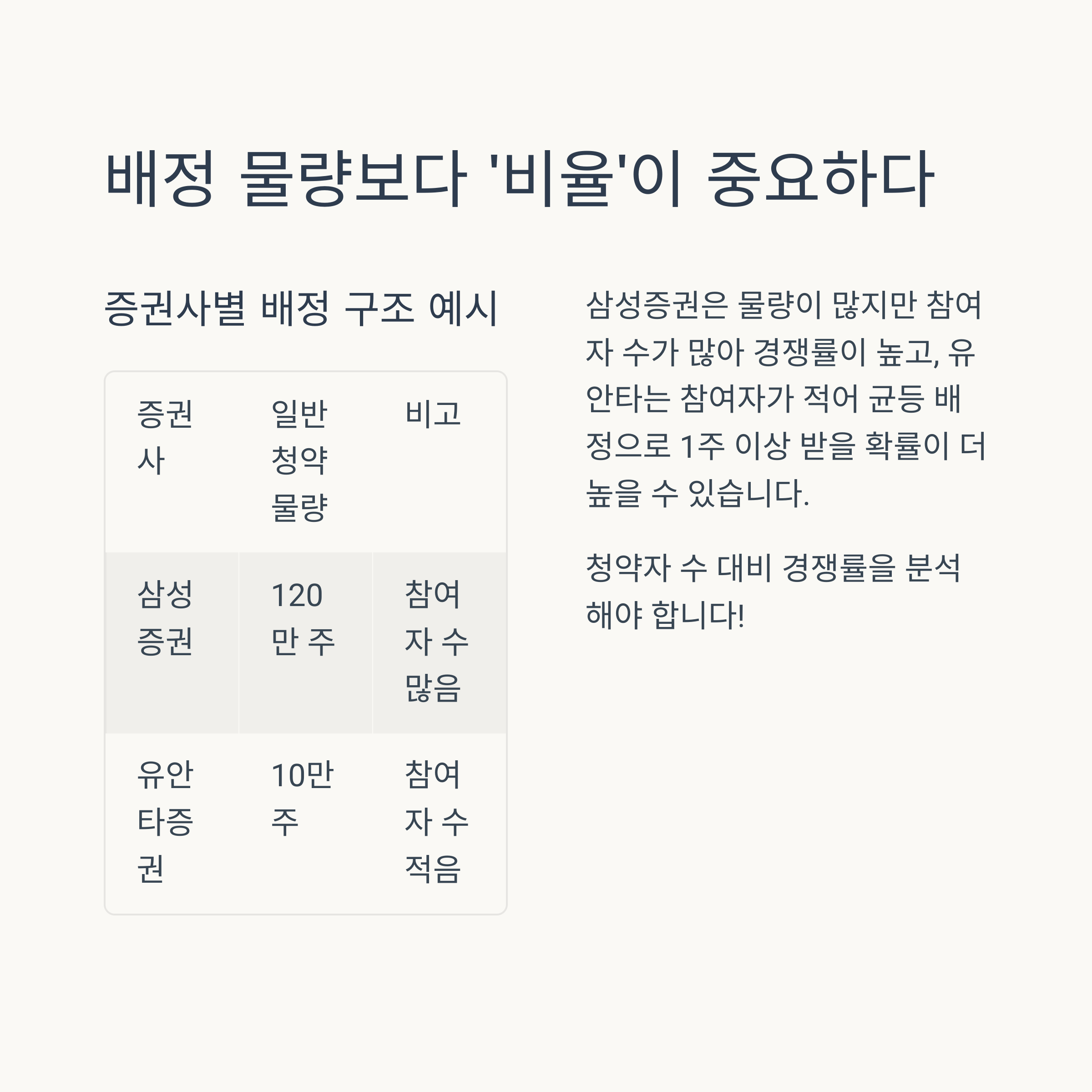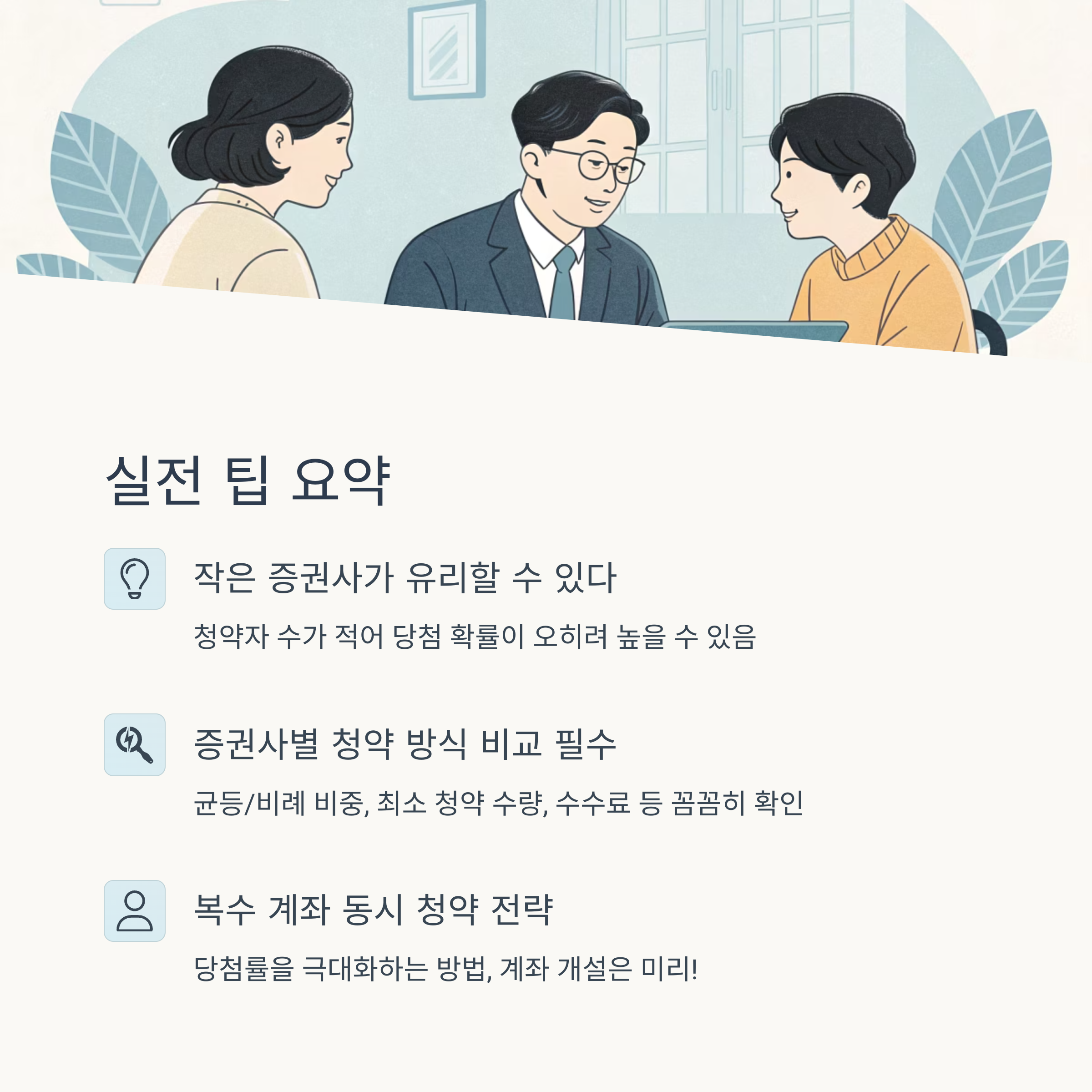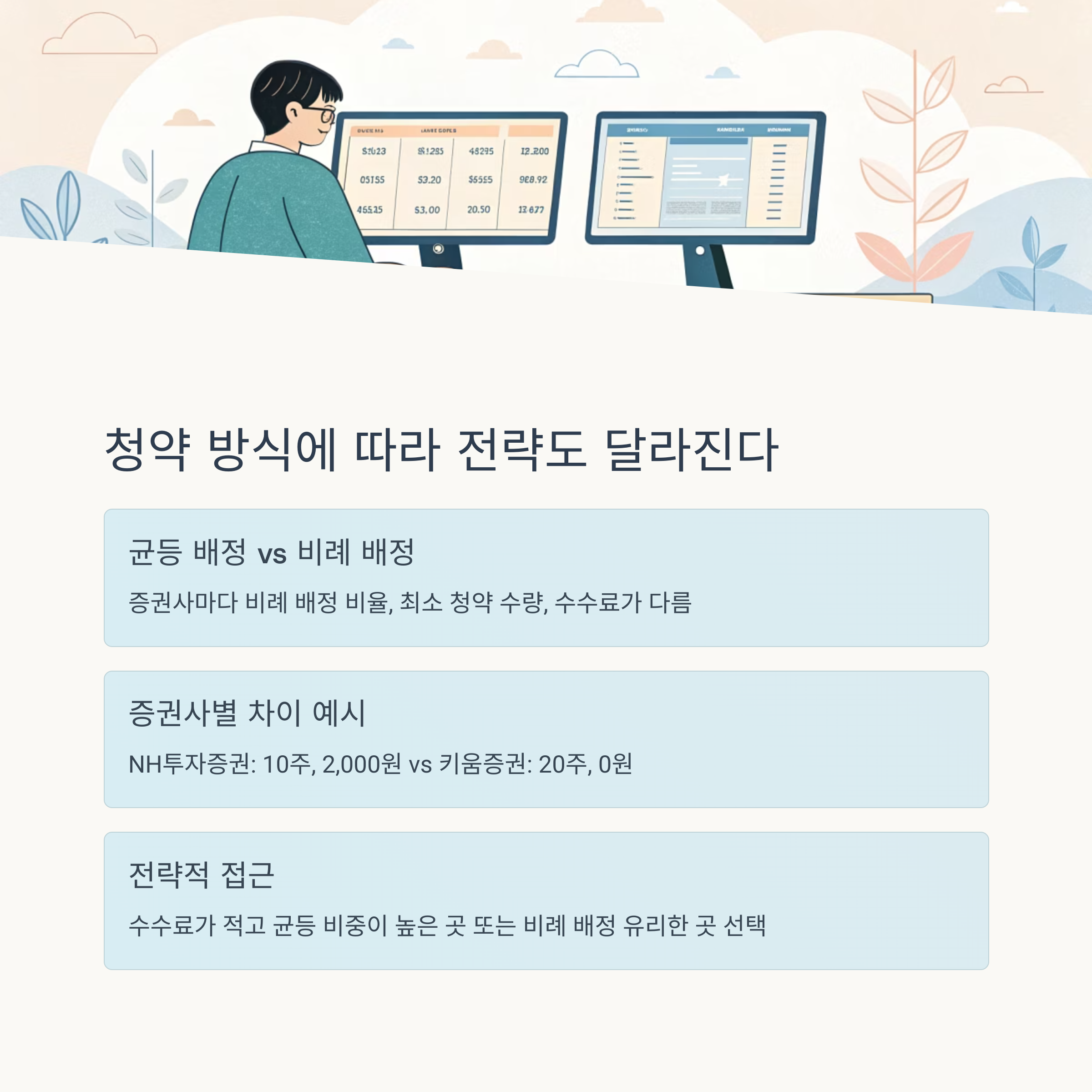 - 증권사별 청약 방식 비교는 필수: 균등/비례 비중, 최소 청약 수량, 수수료 등.