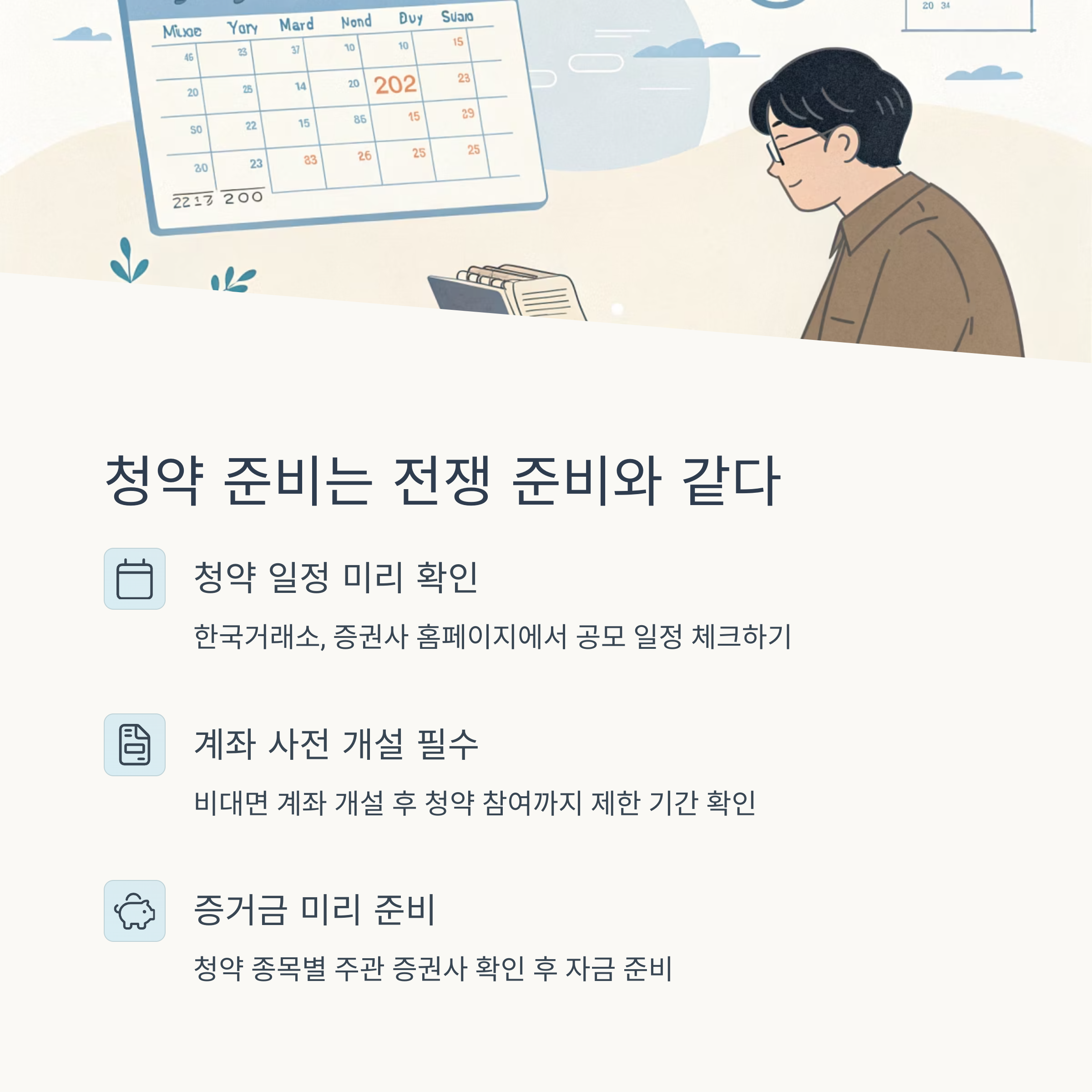 👉 정리: 청약 종목별 주관 증권사 확인 → 해당 증권사 계좌 개설 → 공모 일정 캘린더에 등록 → 증거금 확보 준비까지 완료해야 “준비된 투자자”가 됩니다.
