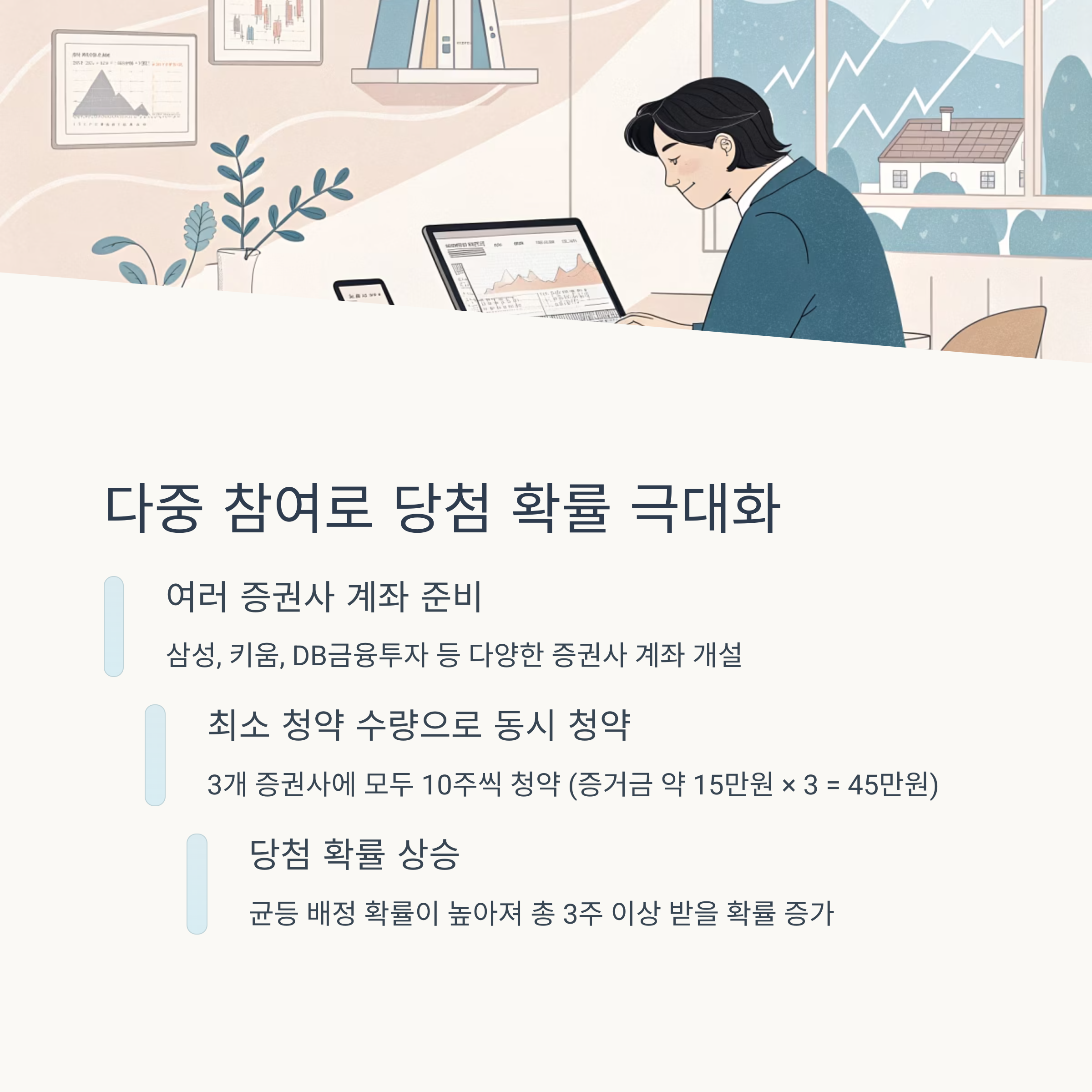 여러 증권사에 최소 청약 수량으로 동시 청약하는 전략은 요즘 가장 많이 쓰이는 방식입니다.
