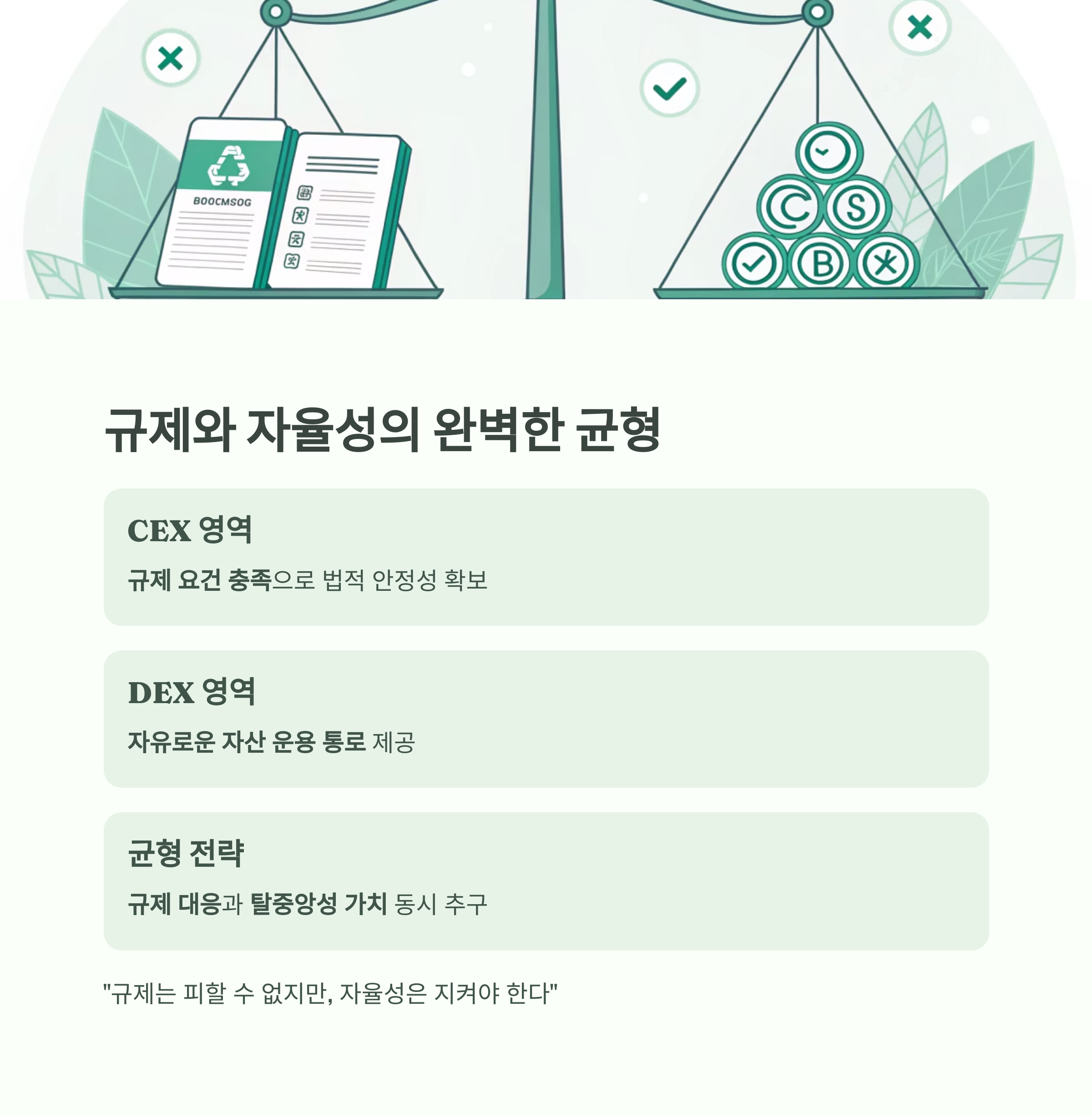 CEX는 DEX의 자산 분산성과 보안성을 일부 흡수할 수 있습니다.