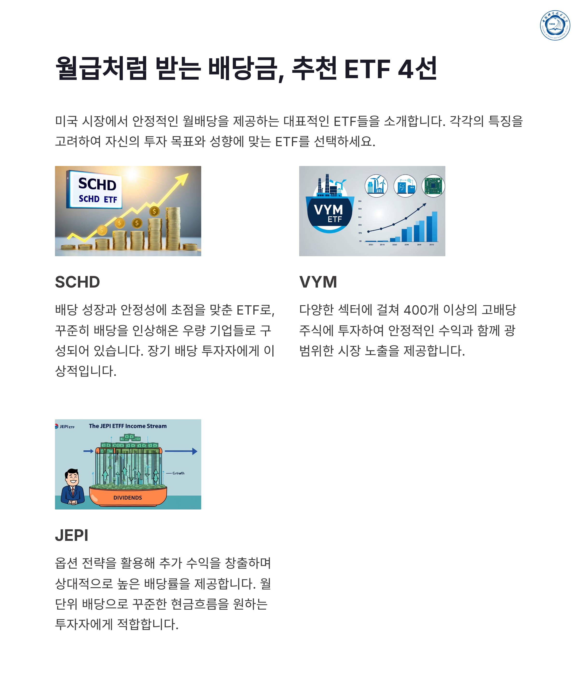 - 3. 월세처럼 수익을 주는 추천 미국 배당 ETF