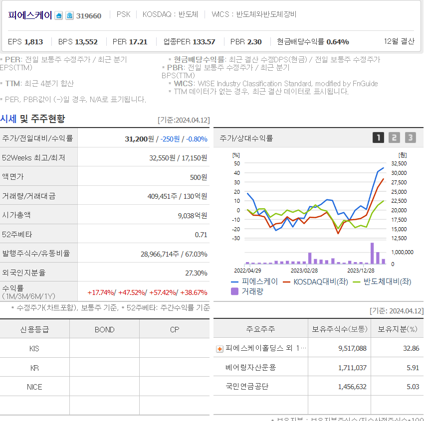 피에스케이 주가 훨훨...신규장비 모멘텀 부각에 매수 후끈 - 핀포인트뉴스
