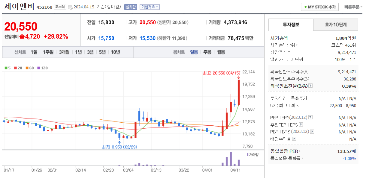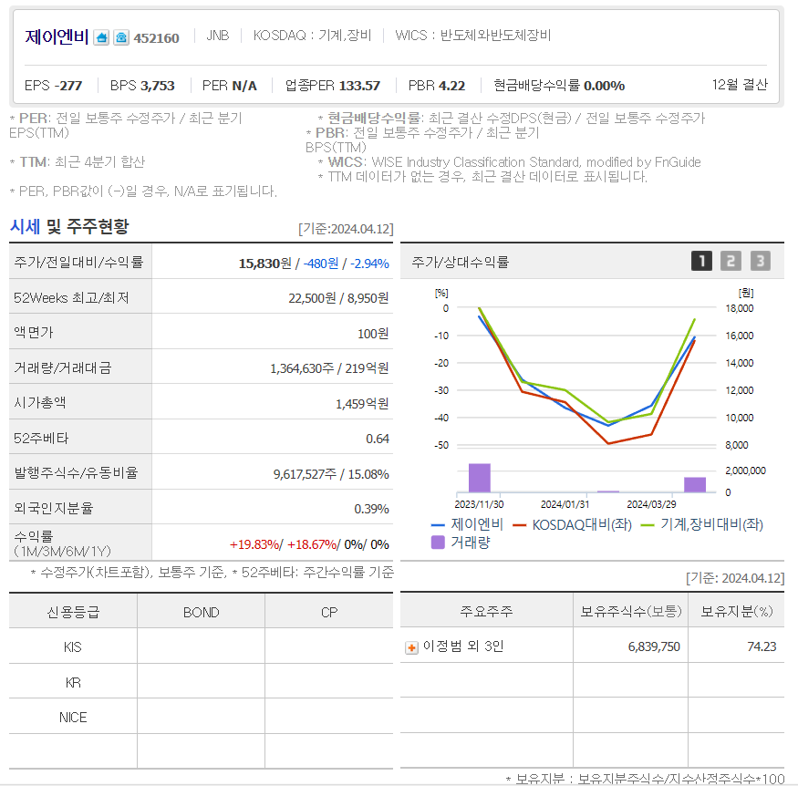 제이엔비가 강세다. 카이스트(한국과학기술원)에서 엔비디아를 뛰어넘는 인공지능(AI) 반도체를 삼성 28나노 공정을 통해 개발했다는 소식에 영향을 받은 것으로 풀이된다. 7일 오전 10시41분 기