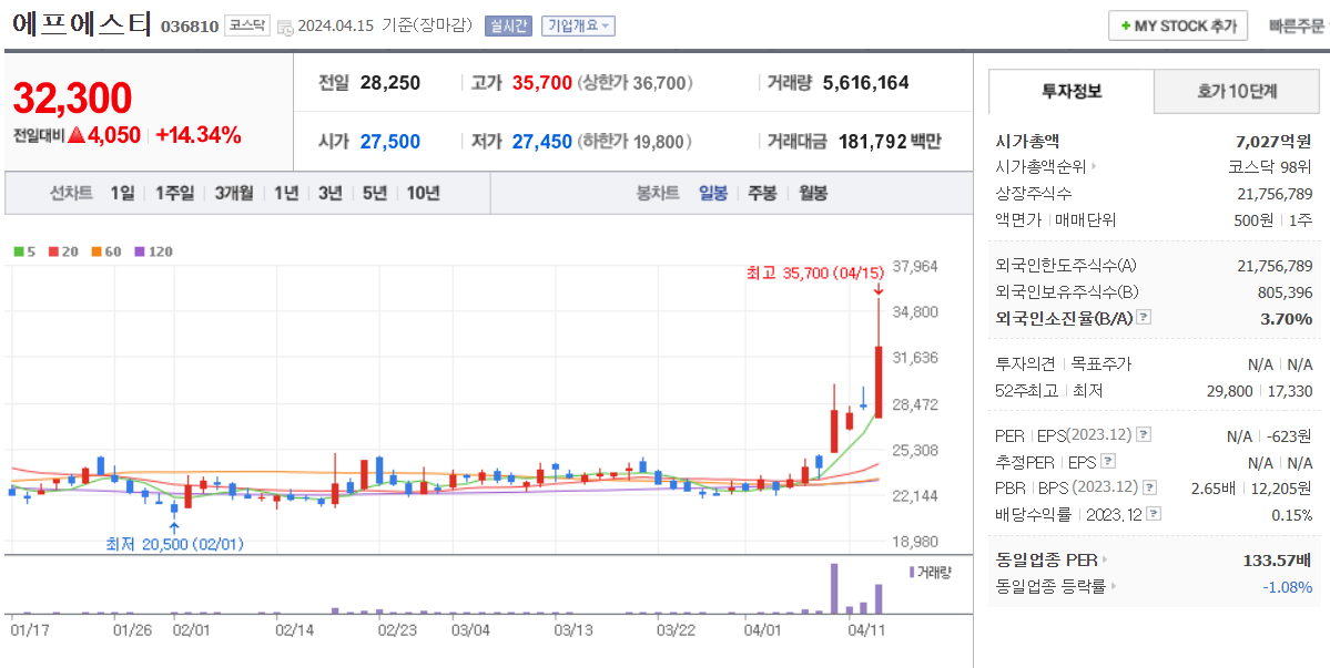 이종목은 화인반도체 기술에서 에프에스티로 변경했으며 포토마스크용 보호막인 펠리클과 온도조절장비인
