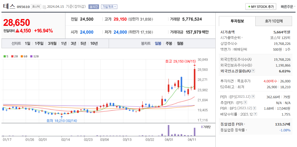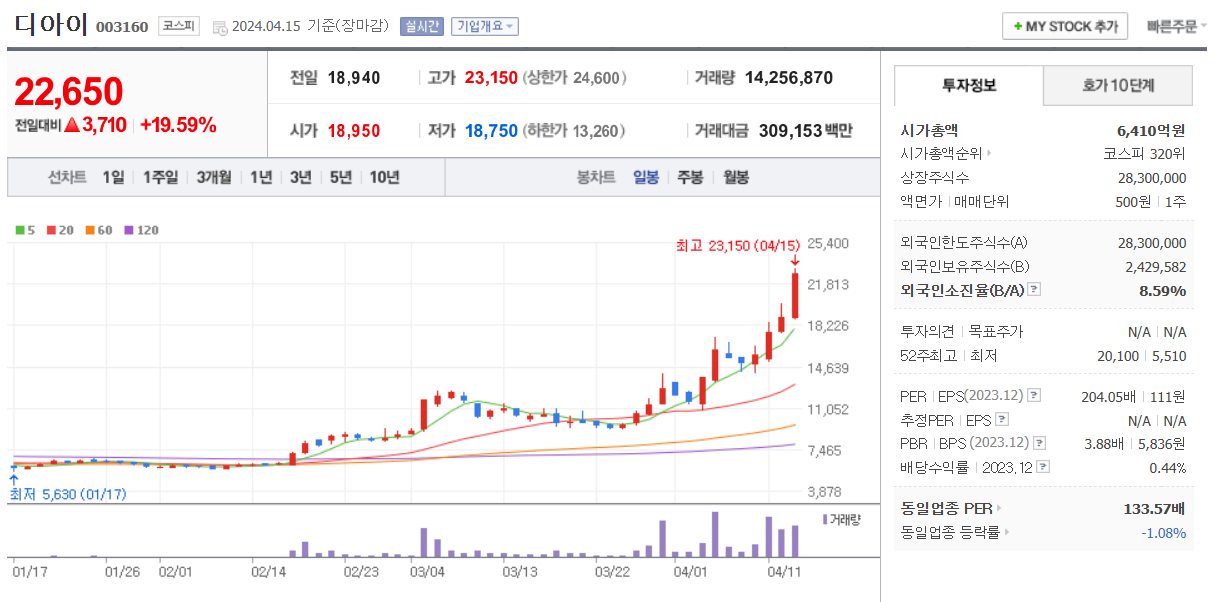내외로 유통주식이지만 최근 반도체 이슈와 함께 5 거래일 엄청난 거래량동반 상승을 했습니다.