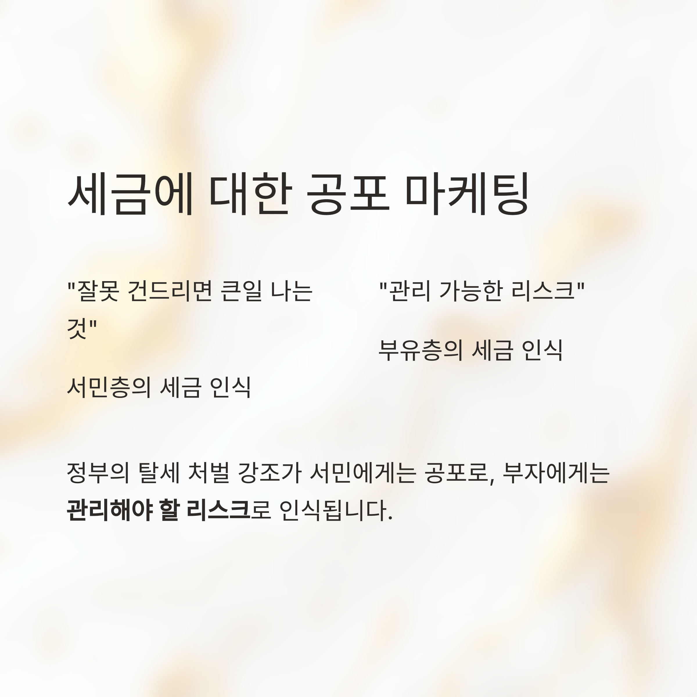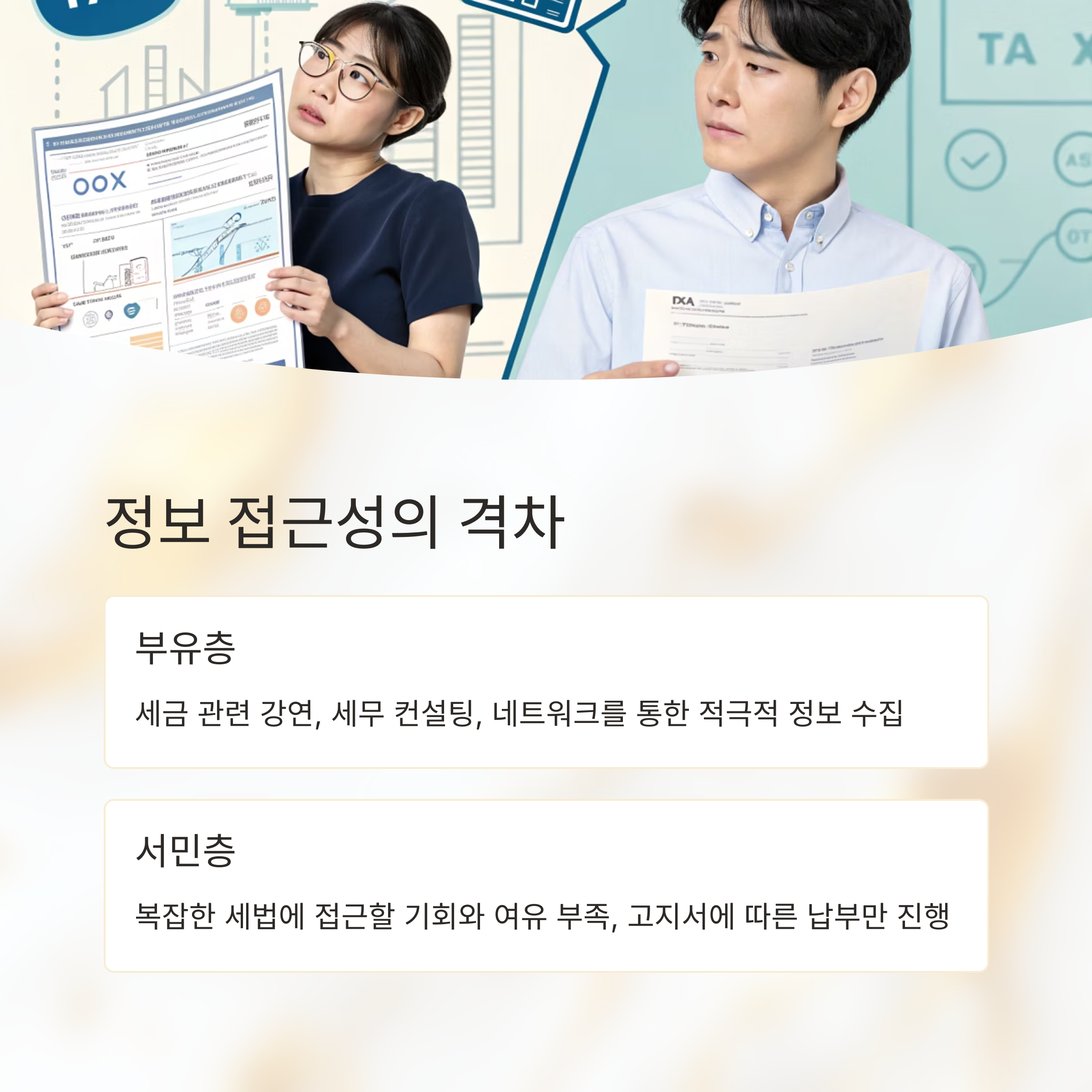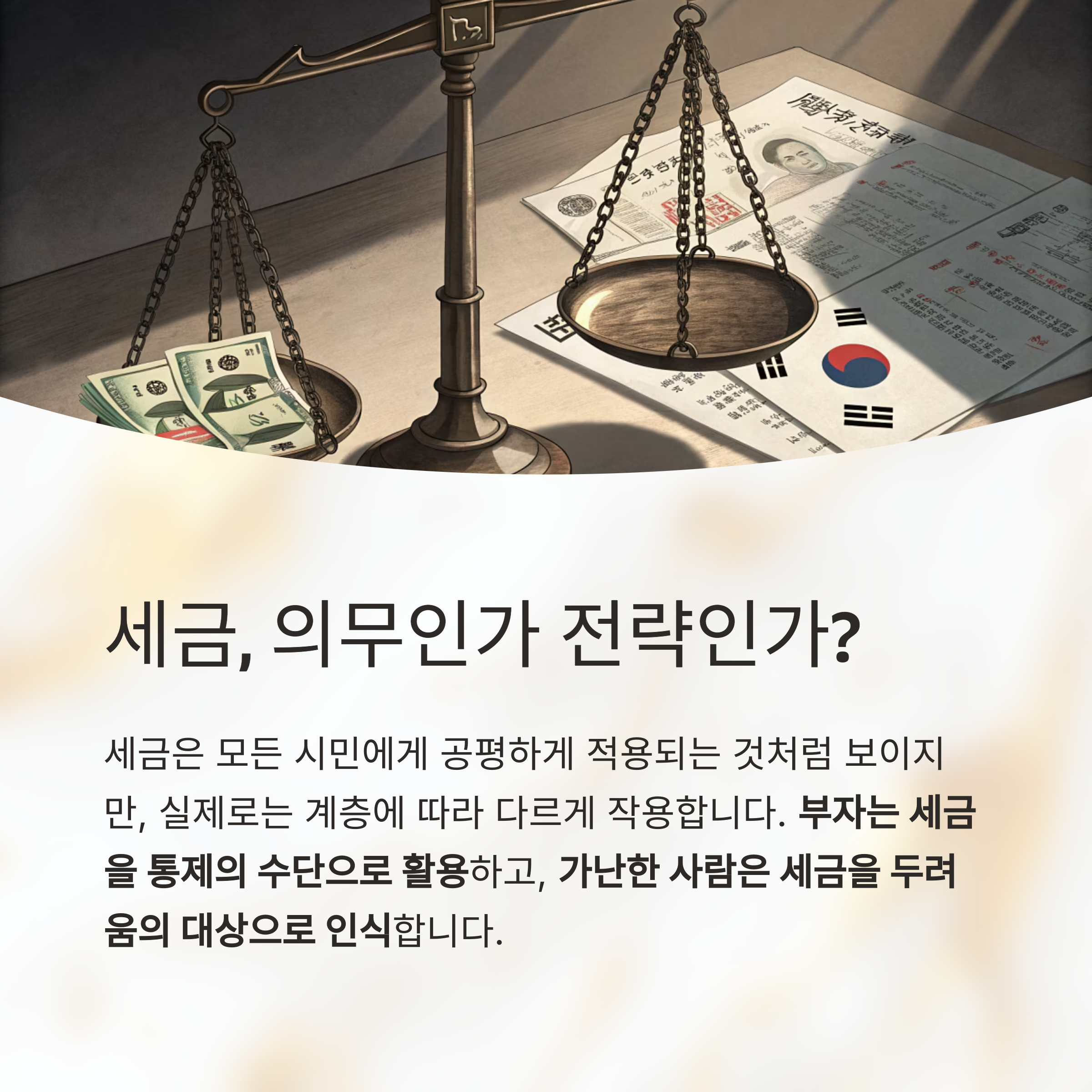 그러나 서민층은 복잡한 세법에 접근할 기회도, 여유도 부족해 그저 고지서에 따라 납부만 하는 구조에 머무릅니다.