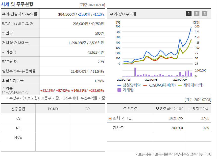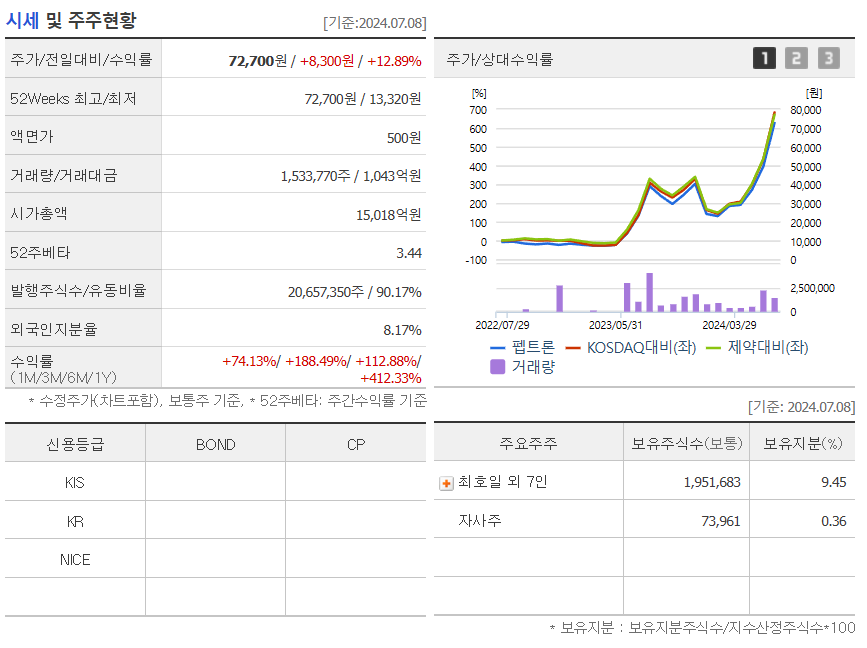 지난 6월 24일 기사를 보면 먹는 비만약 개발을 위해 자사주를 팔아서 600억 원이 넘는 자금 확보하여 경구용