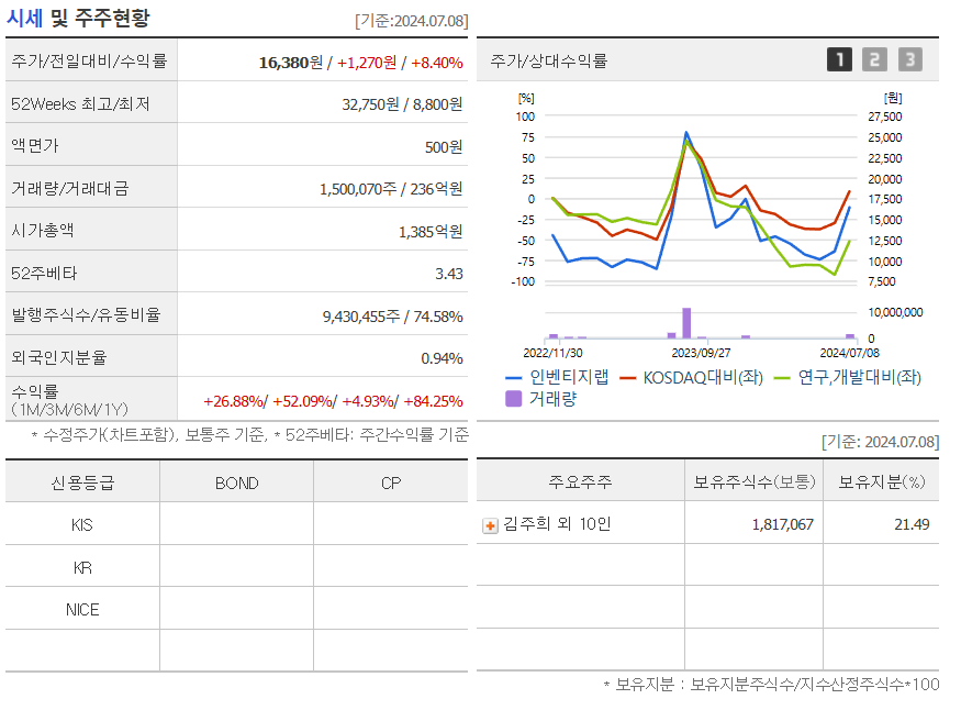 이종목 역시 대주주 지분은 크지 않고 유통주식수는 68% 정도가 되고 있습니다. 최근 1년간 주가 상승률은