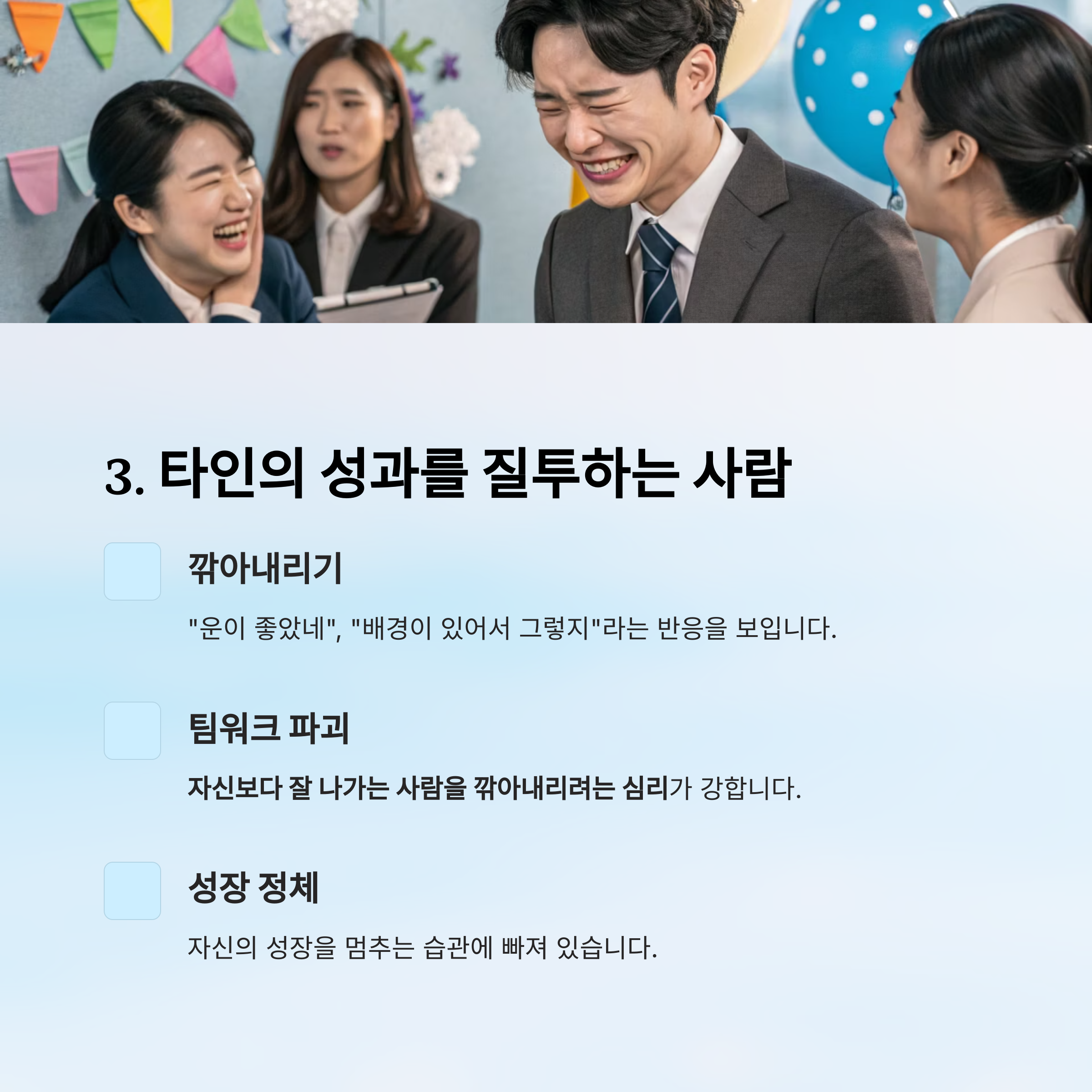 자신보다 잘 나가는 사람을 깎아내리려는 심리가 강합니다.