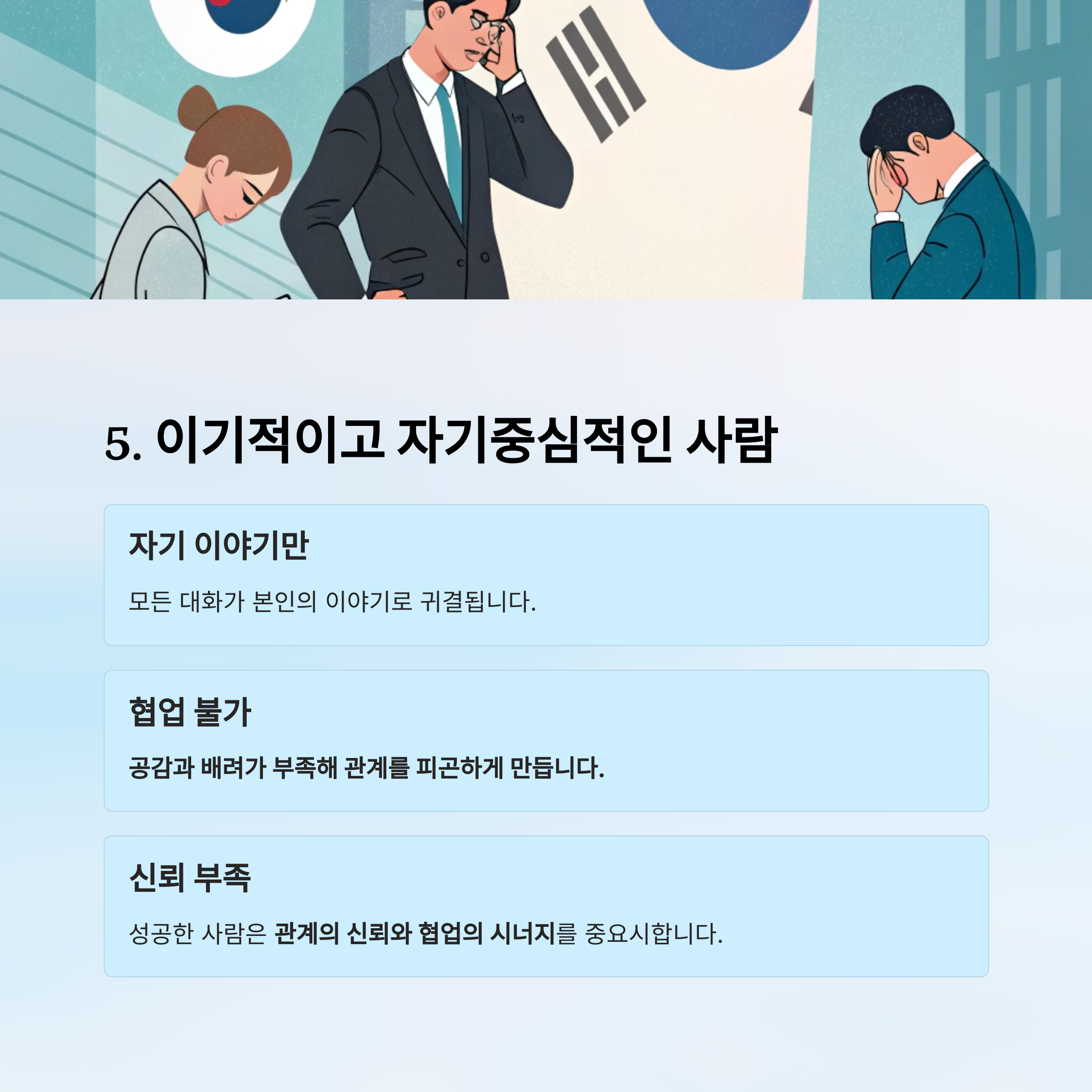 공감과 배려가 부족해 관계를 피곤하게 만듭니다.
