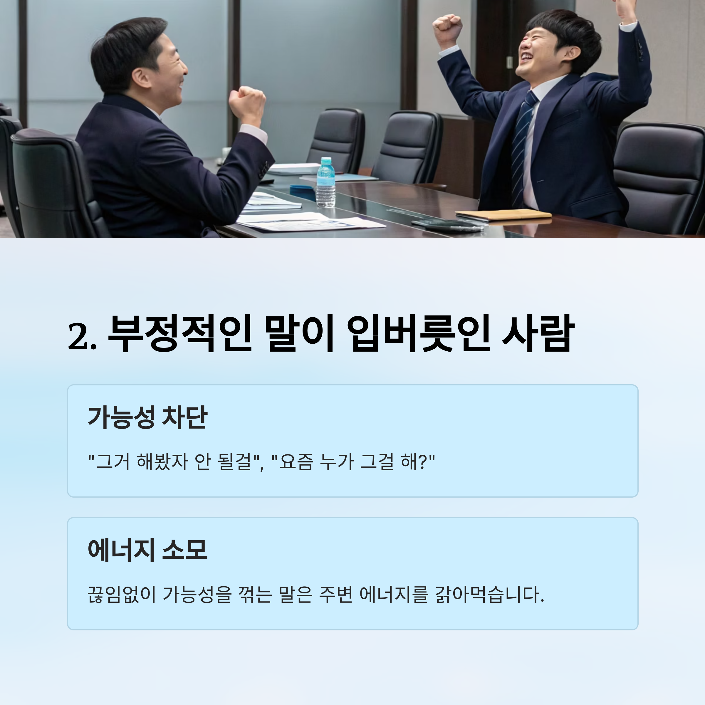 끊임없이 가능성을 꺾는 말은 주변 에너지를 갉아먹습니다.