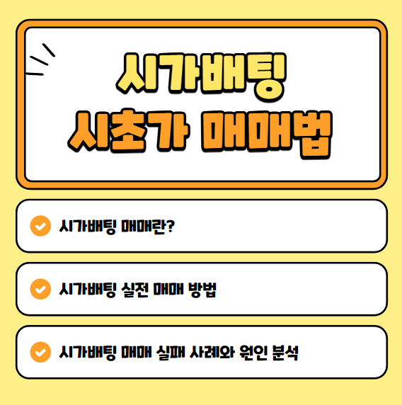 안녕하세요. 경제적 자유를 갈망하는 어백이 입니다. 오늘은 시가배팅 매매에 대해 알아보겠습니다.