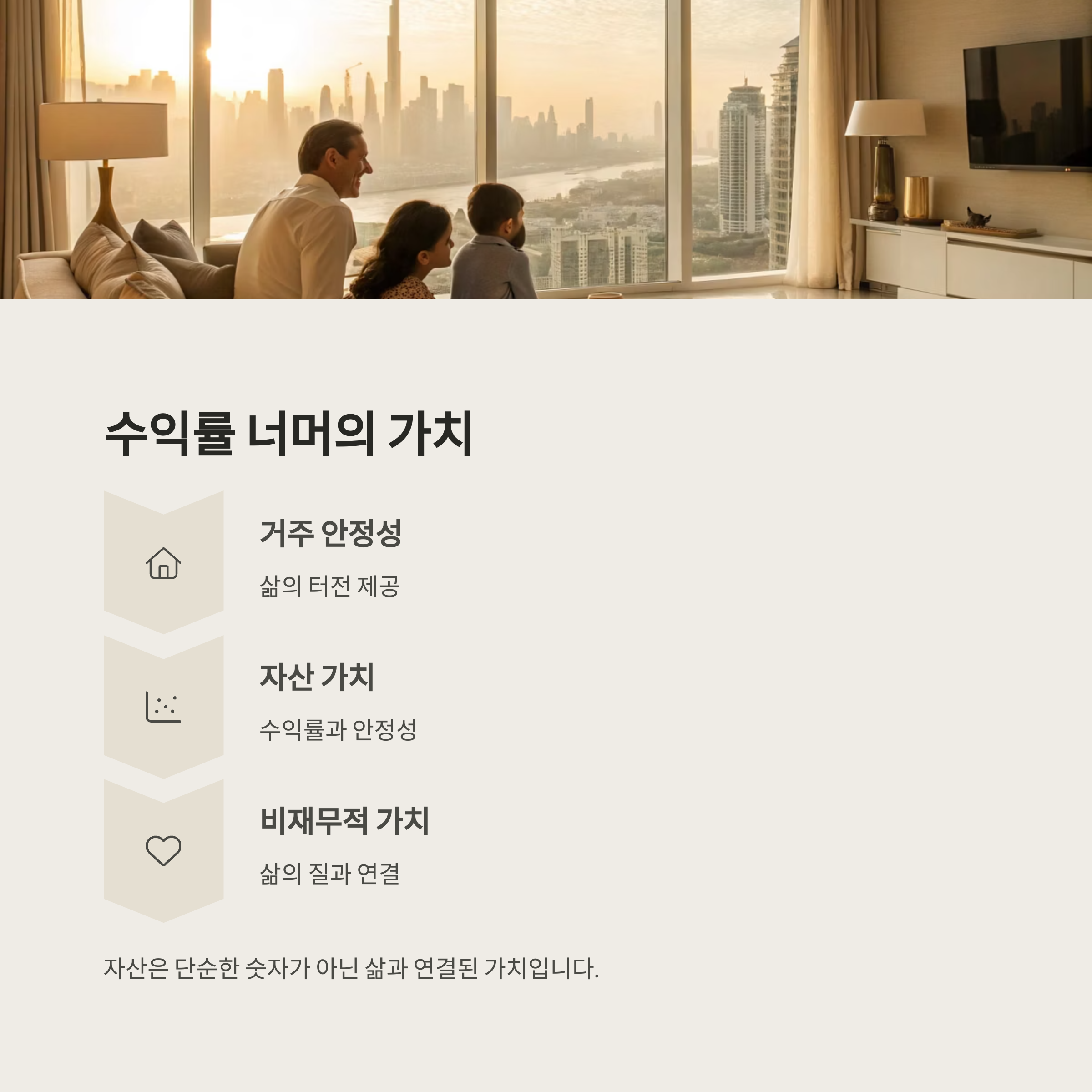 자산은 숫자뿐 아니라 삶과 연결된 가치이므로, 단순 수익률로는 환산할 수 없는 비재무적 가치도 반드시 포함해 고려해야 합니다.