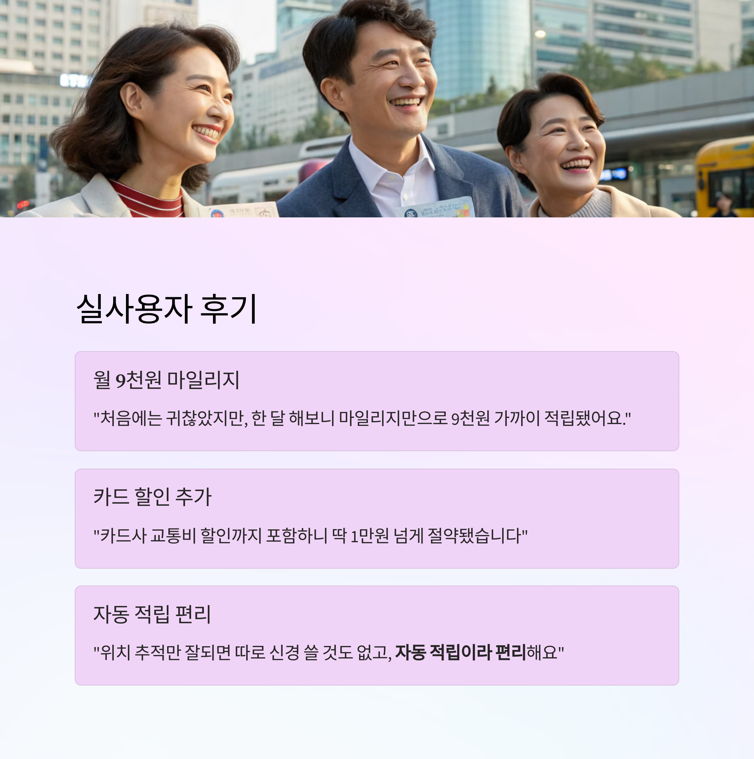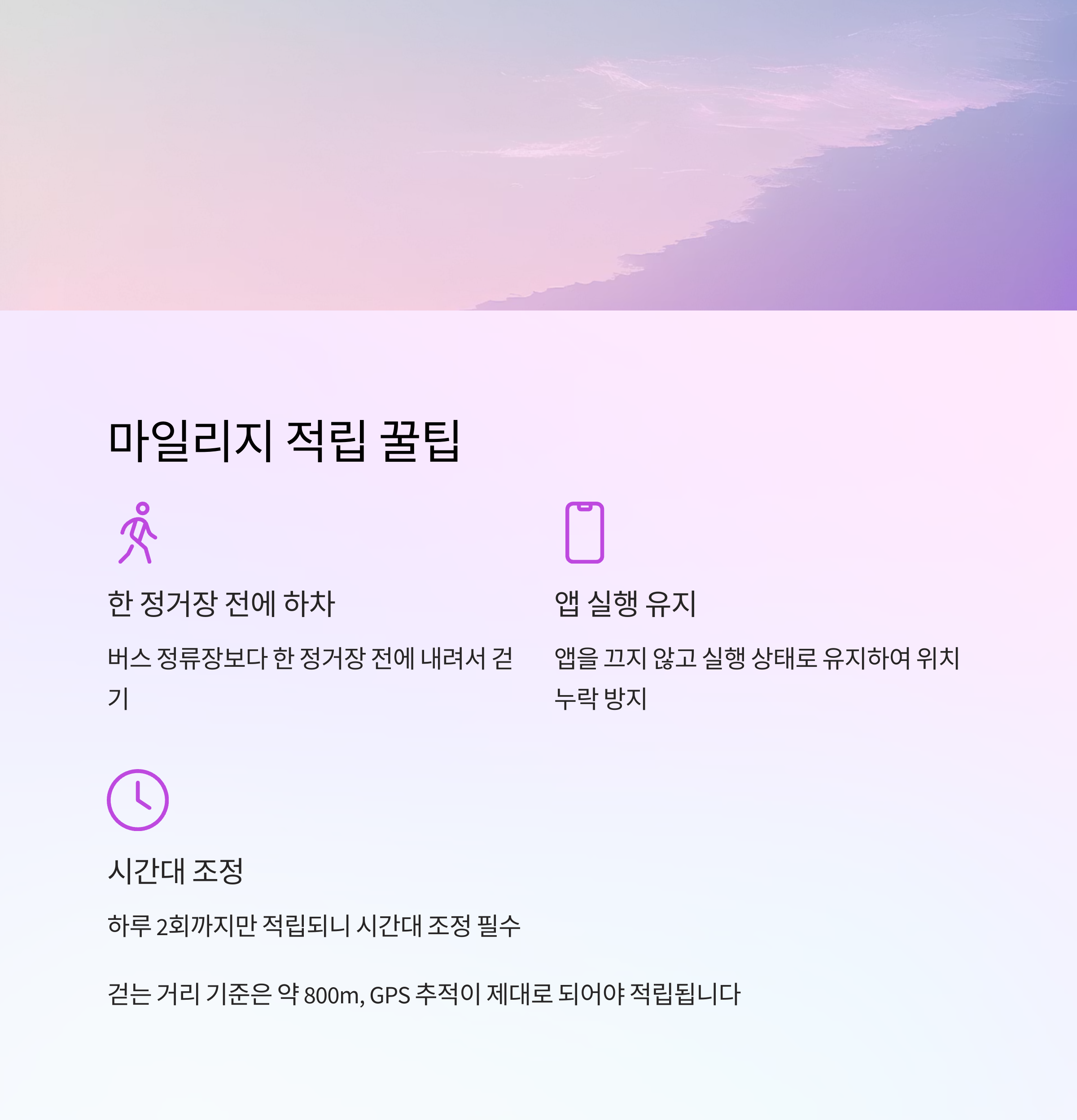 | 4단계 | 대중교통 이용 및 마일리지 자동 적립 |