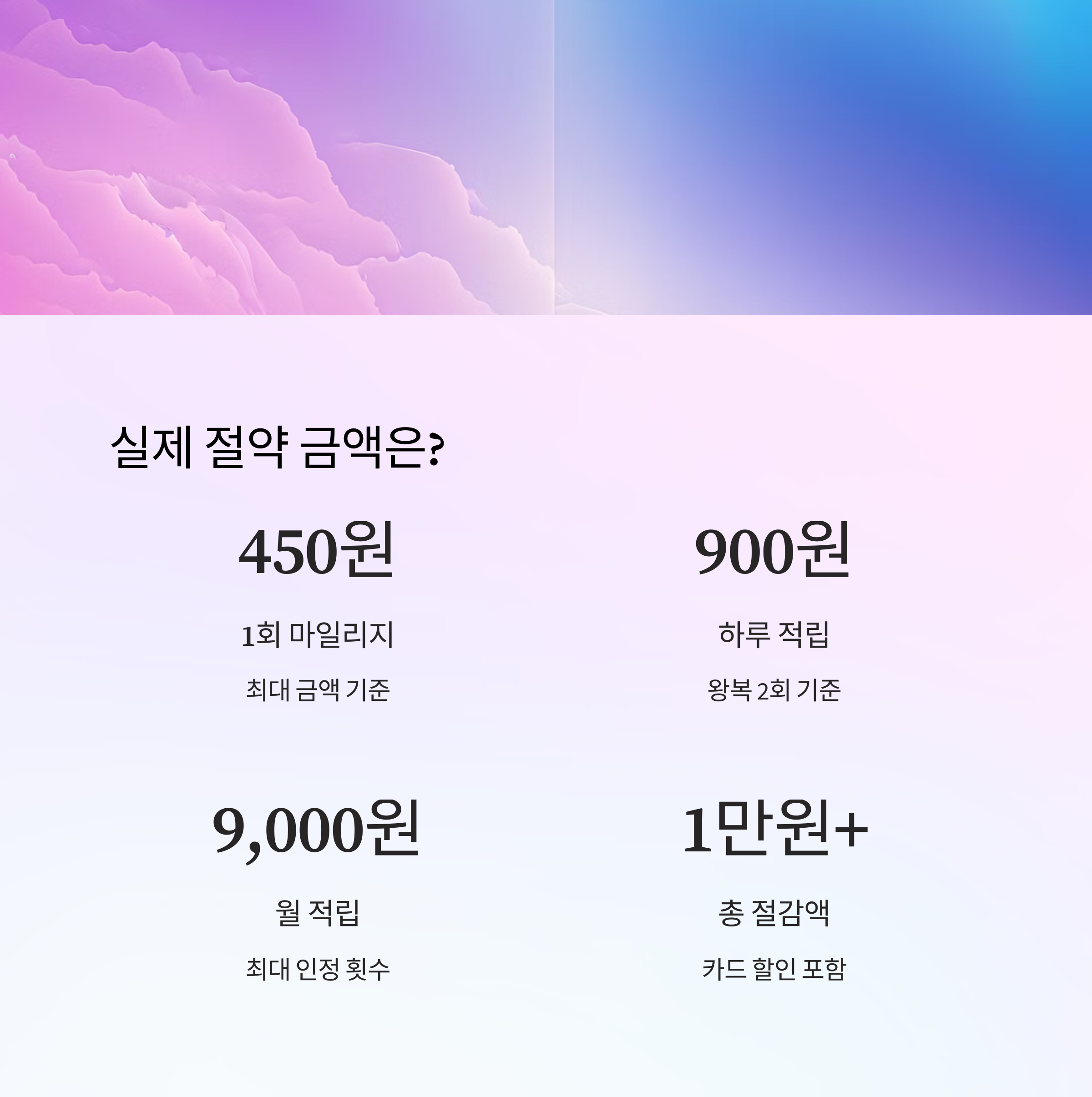 "적립된 마일리지와 카드 할인 혜택을 합치면 한 달 만에 1만원 절약도 가능합니다"