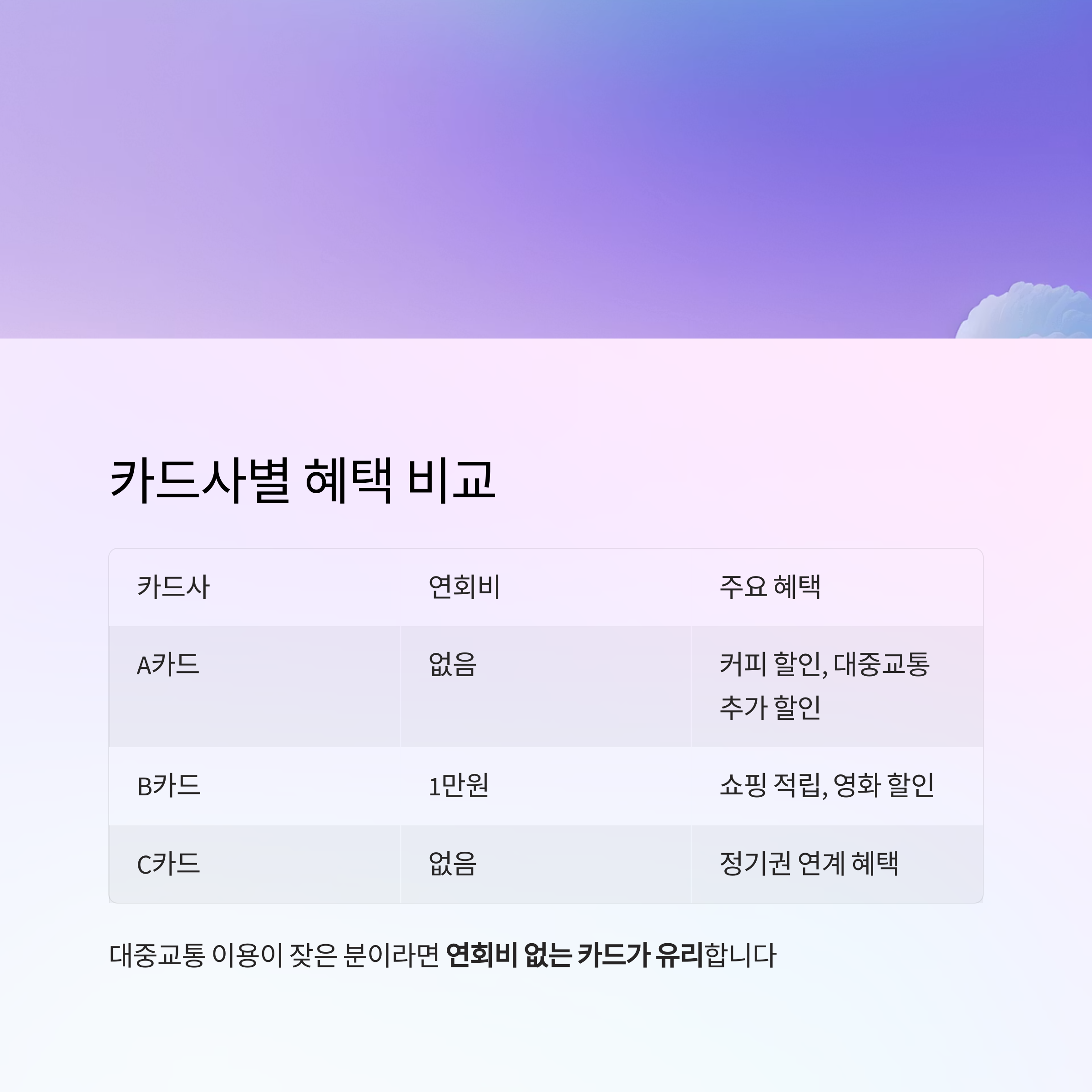 "대중교통 이용이 잦은 분이라면 연회비 없는 카드가 유리합니다"