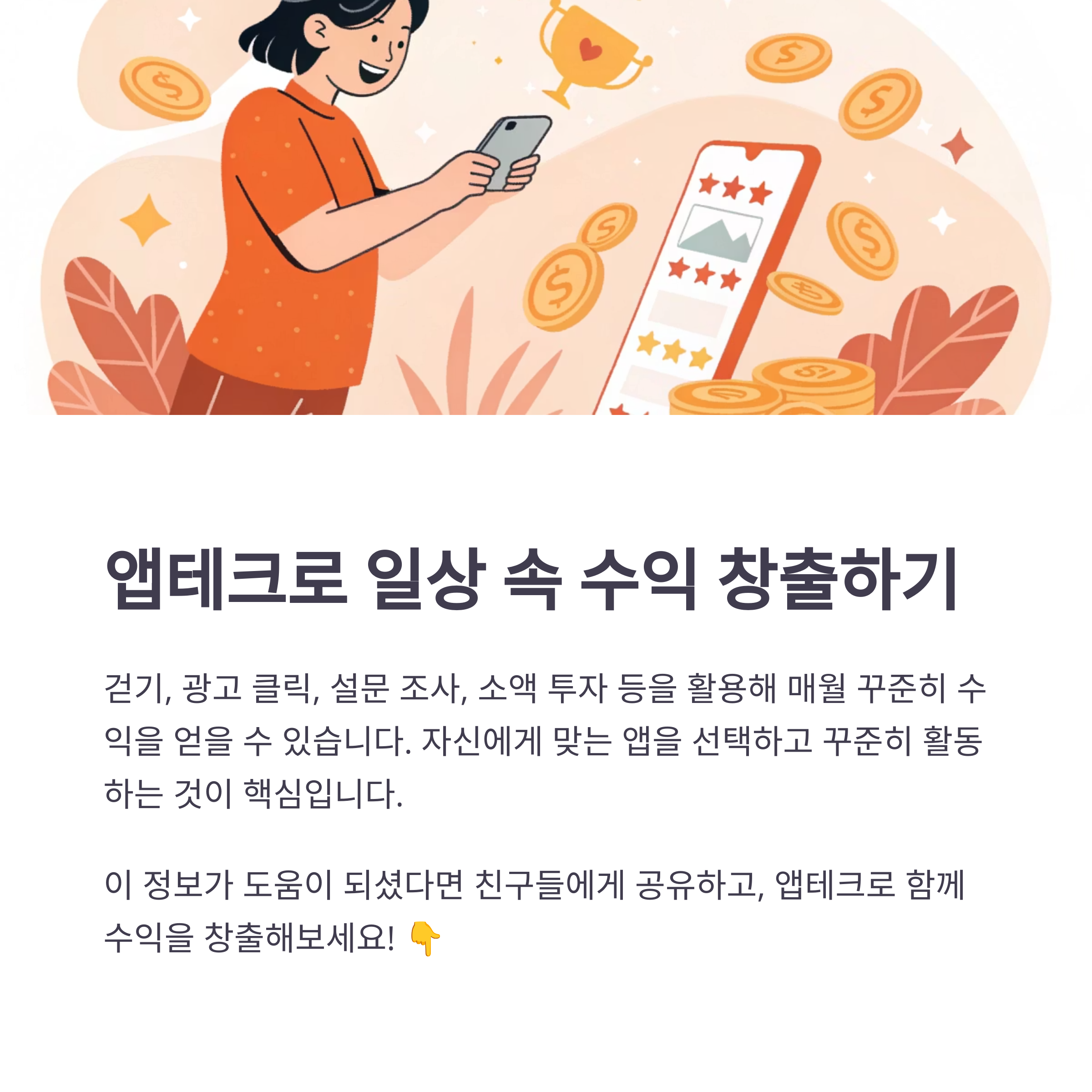 소액이라도 앱테크를 통해 일상 속에서 추가적인 수익을 창출하는 재미를 느껴보세요.