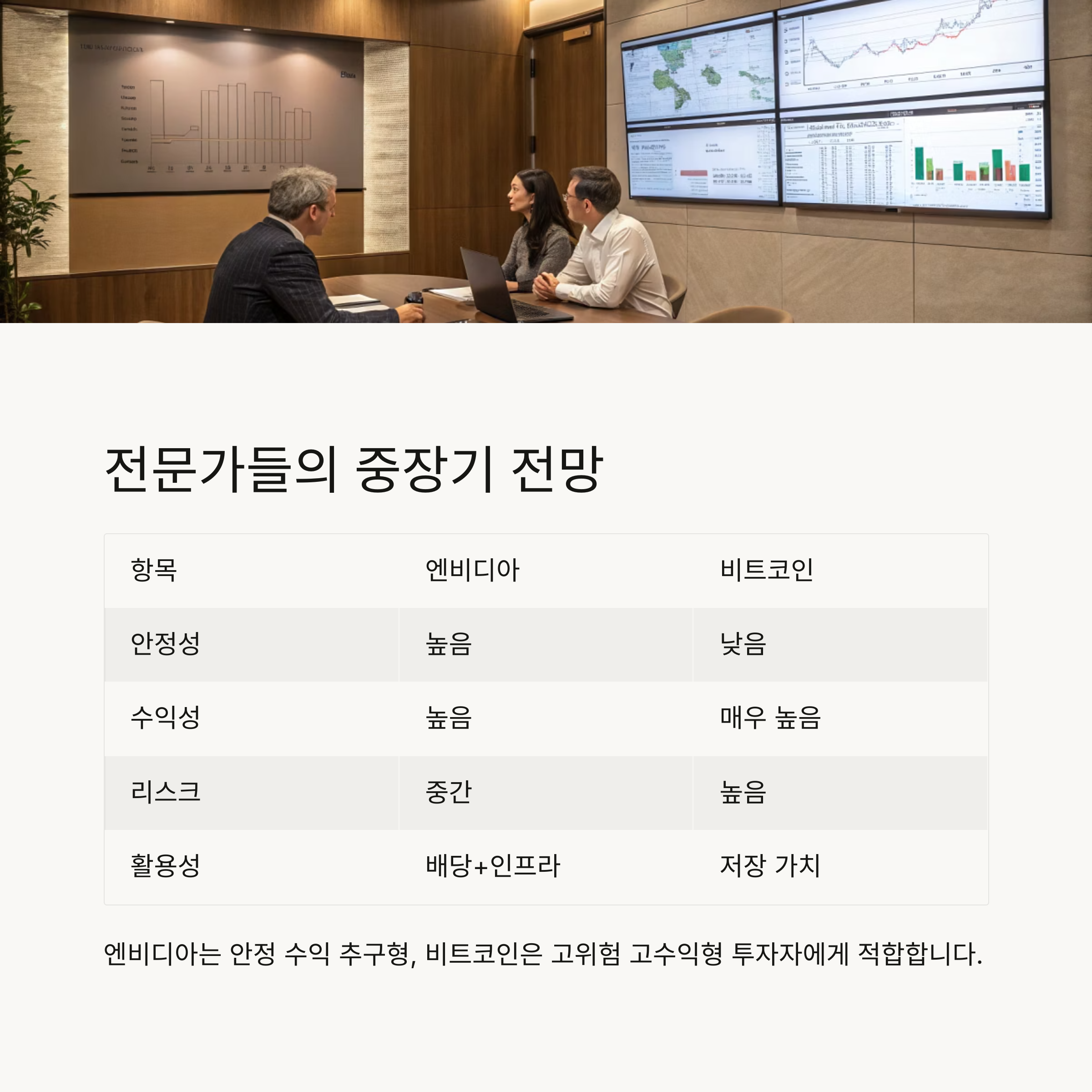 엔비디아와 비트코인은 각각 AI 반도체와 디지털 자산 시장을 대표하는 투자처로,