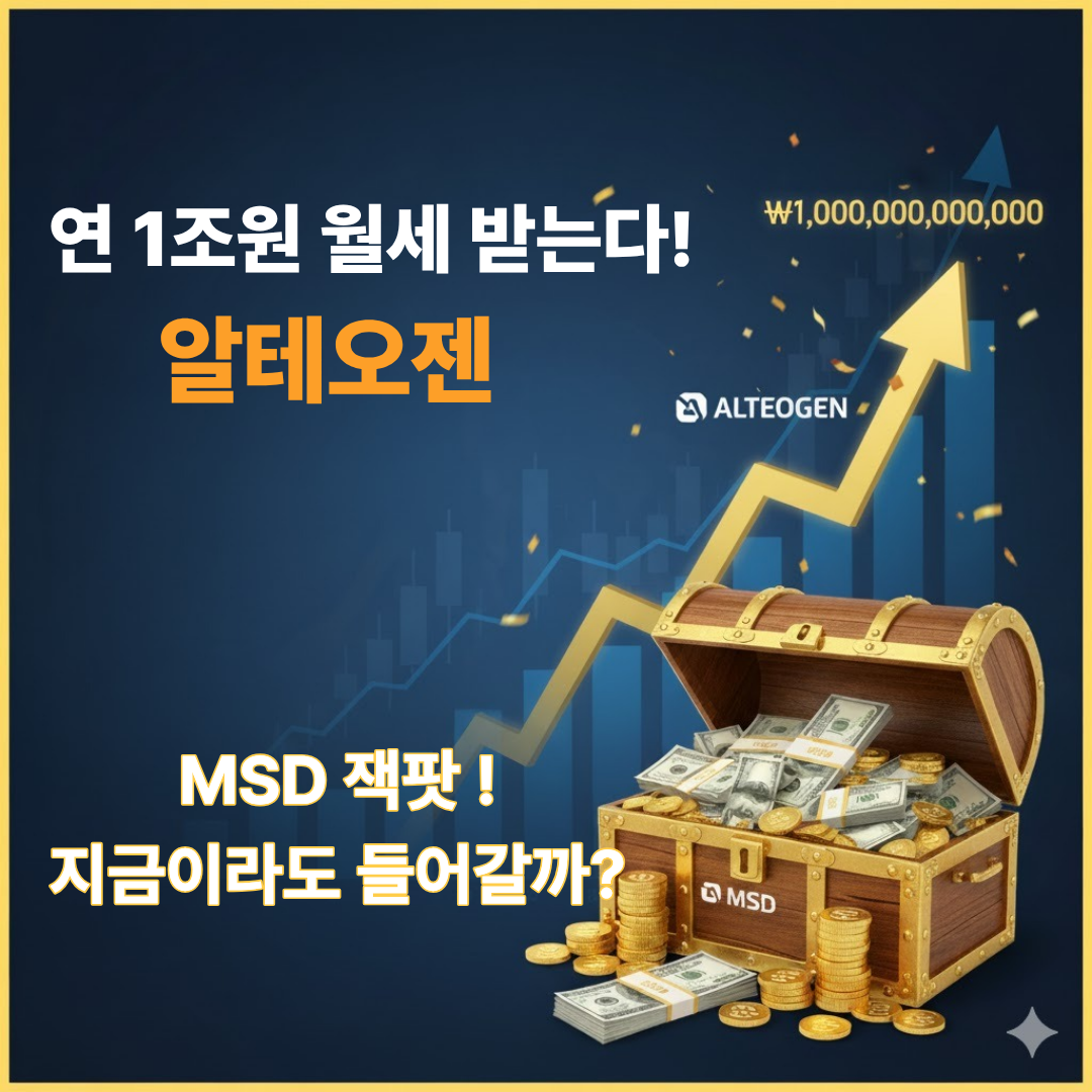- 지금까지 분석한 것처럼, 알테오젠은 'ALT-B4'라는 독보적인 기술을 가졌어요. 특히 MSD와의 '연 1조 원' 규모의 로열티 계약은 장기적인 현금 창출(캐시카우)을 확보했다는 점에서 그야말로 '게임 체인저'입니다. 재무 상태도 흑자 전환이 기대되고, 차트와 수급(큰손들의 매수세)도 아주 뜨겁습니다.