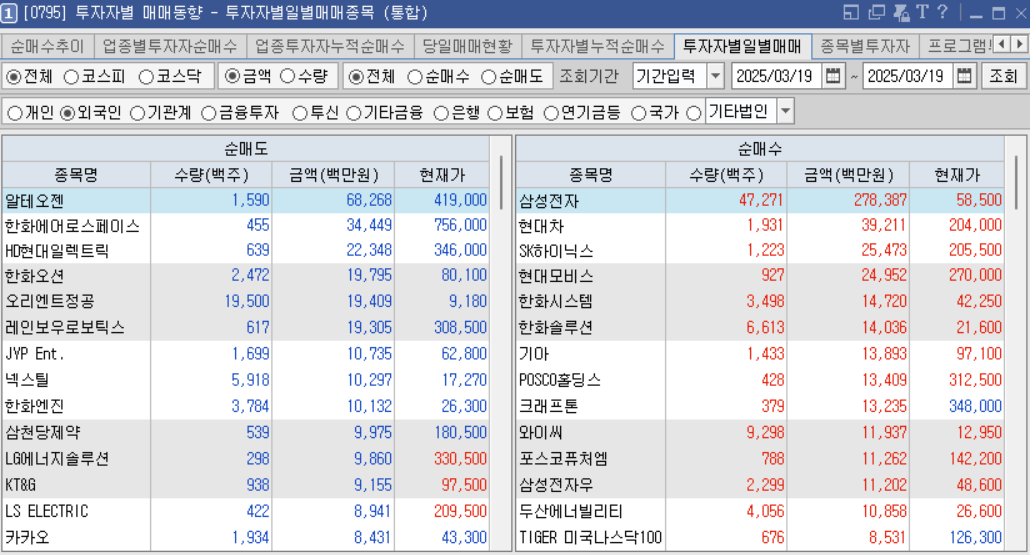 오늘 외국인 기관 순매수 상위 종목
