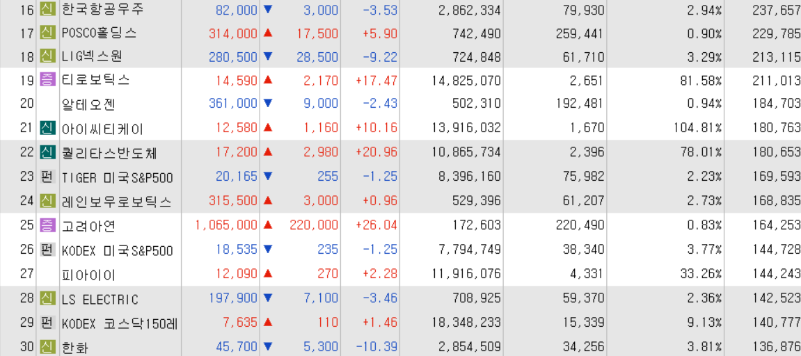 오늘 거래대금 상위종목에서는 한화그룹주가 크게 상승을 보였는데 오후장 들어 하락을 했고 로봇주도