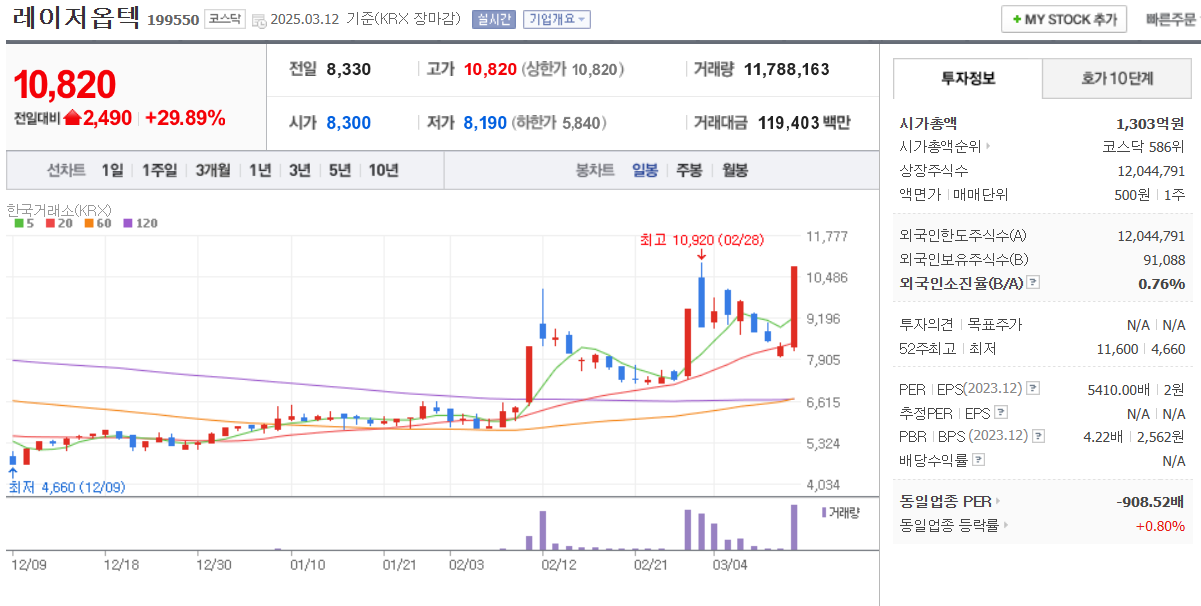 오늘 상한가 이유로는 미국피부과학회에 참가 레이저 장비로 공식 초청됐다는 이슈로 거래량 동반