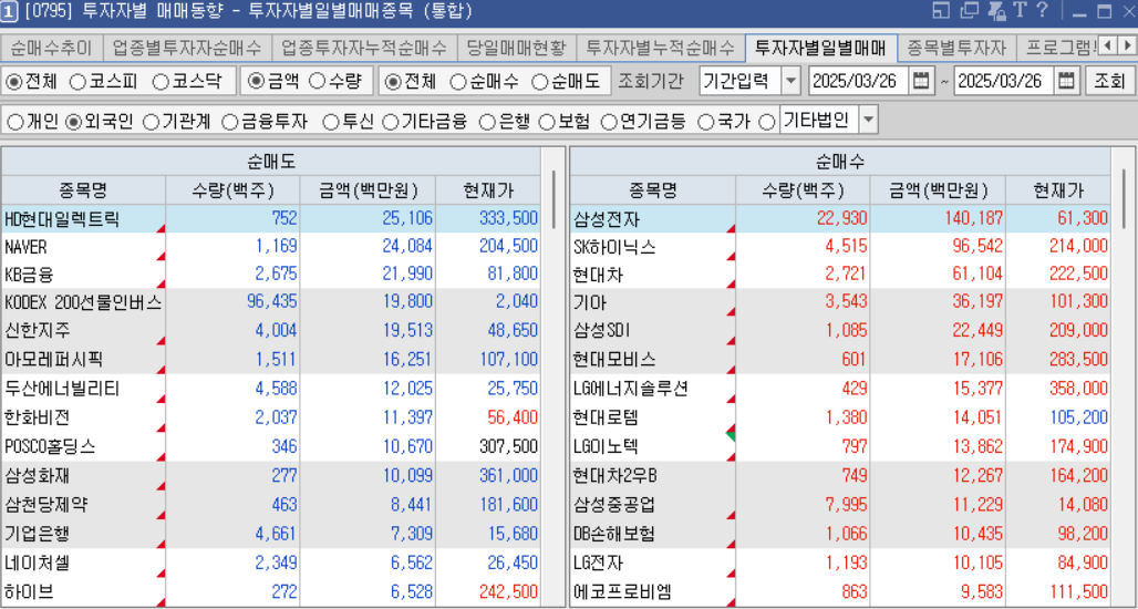 외국인 순매수 종목에서는 반도체, 자동차, 2차 전지, 조선, 방산, LG 그룹주 순매수