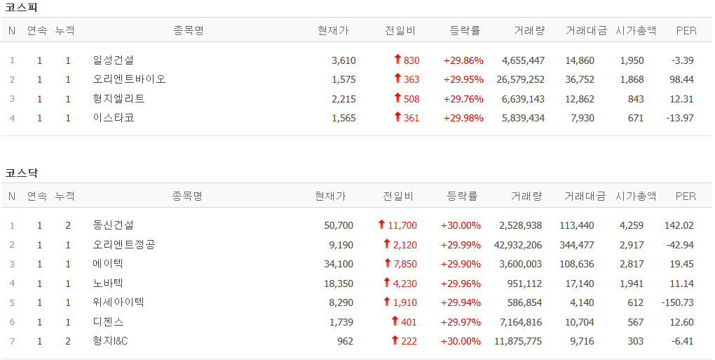대장주는 오리엔트정공이 거래대금 크게 나오면서 상한가이고 평소 가장 크게 먼저 움직였음.