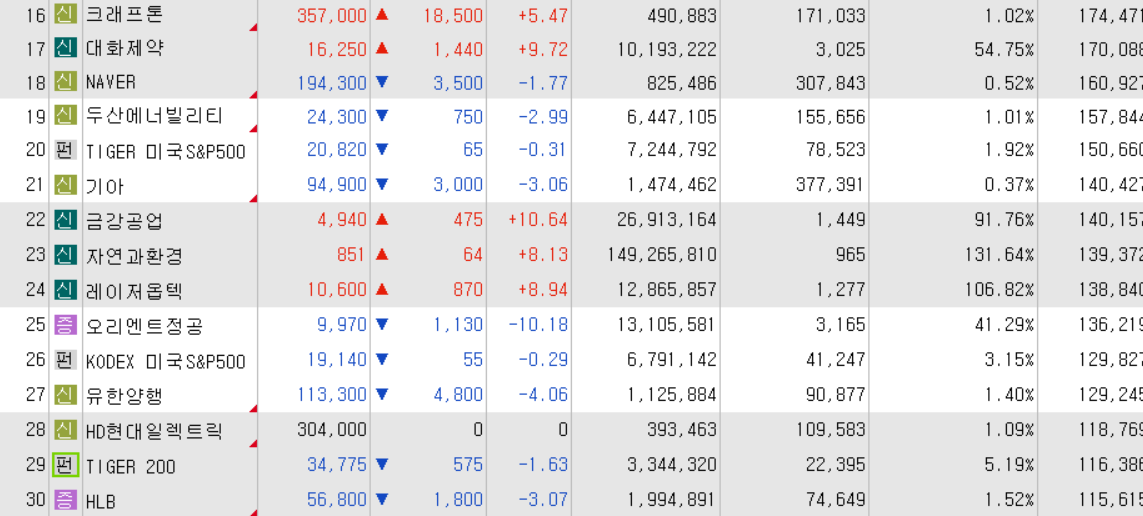오늘의 거래대금 상위 종목