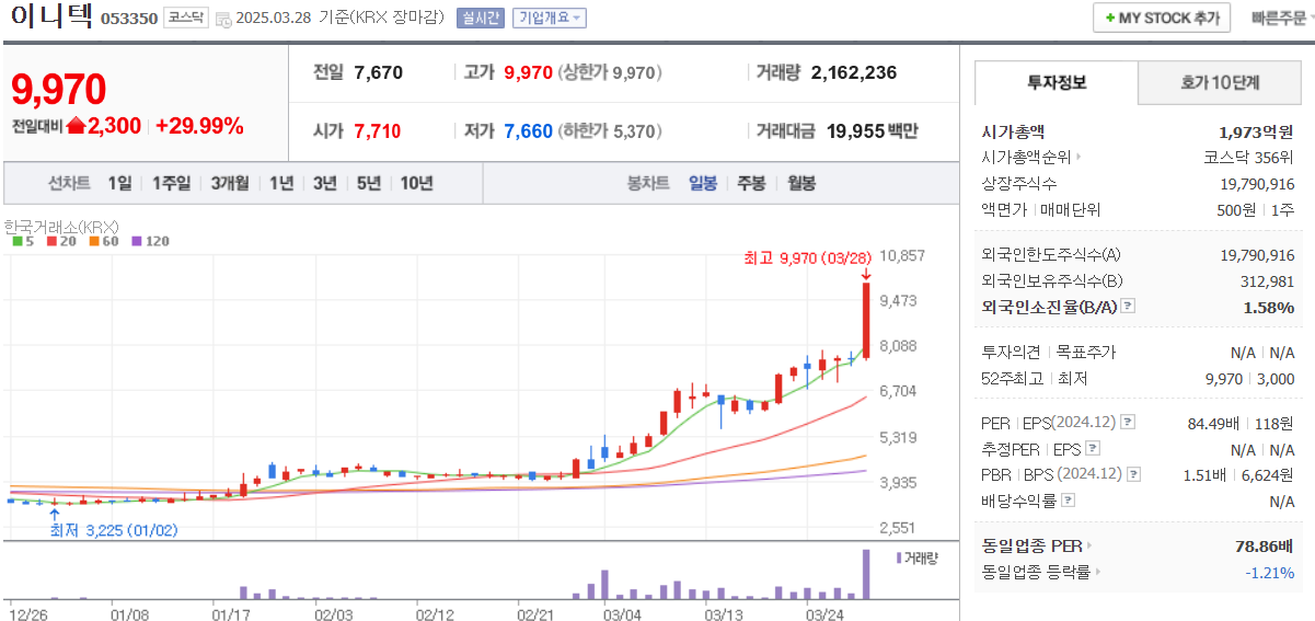 | 오늘의 주식시장 정리(4월1일 주식 상한가 종목 및 특징주) (0) | 2025.04.01 |