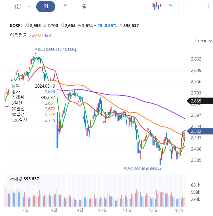 오늘 코스피 차트는 상승 출발해서 장중 크게 상승을 보였지만 결국 강보합 마감을 하면서 음봉마감.