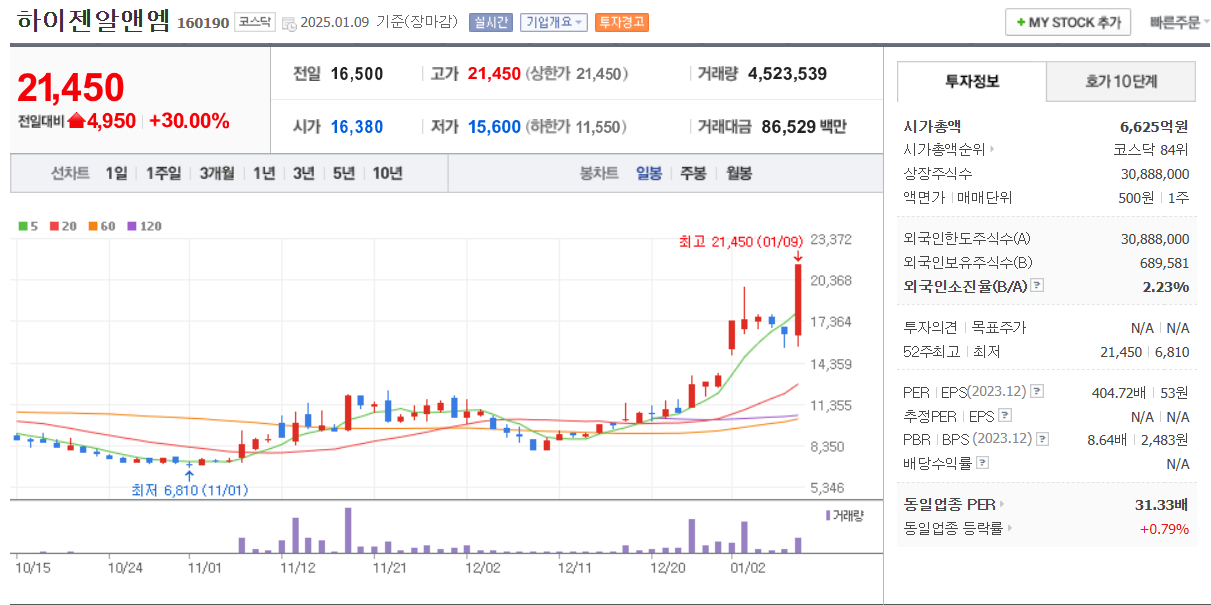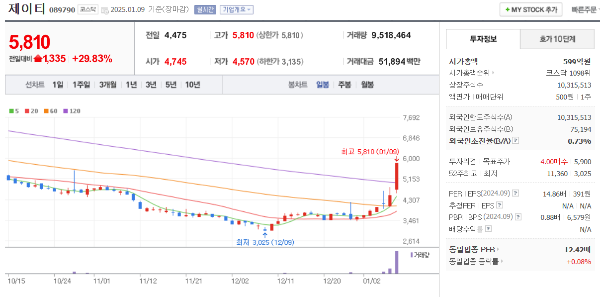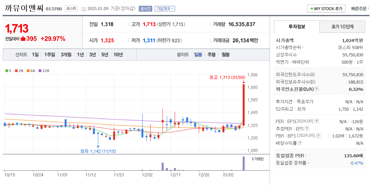 오늘 다시 상한가 마감을 했음. 상한가 이유로는 CES 2025 휴머노이드 로봇 이슈가 부각되고 엔비디아