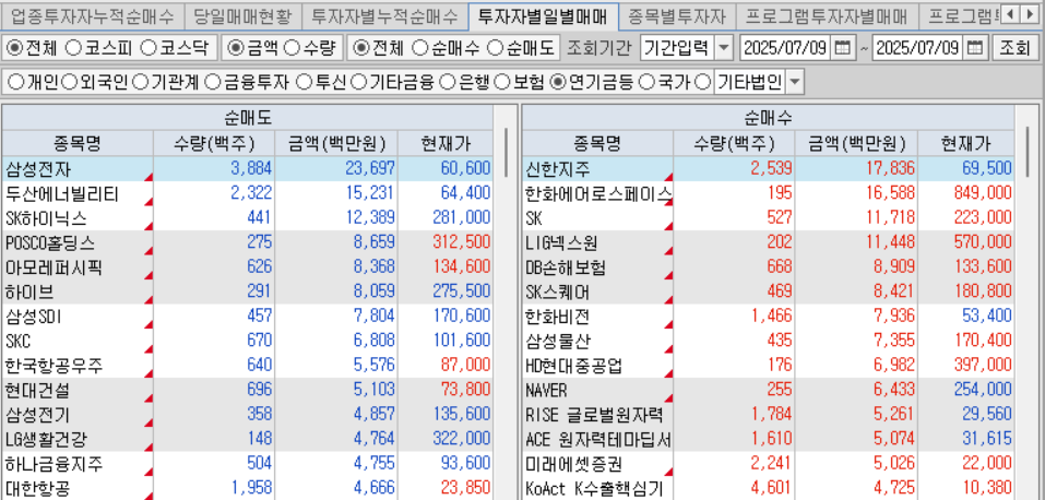 연기금에서도 지주사, 방산, 보험, 조선등을 순매수