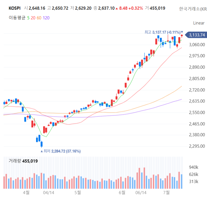 코스피 지수는 0.6% 상승한 3133.74로 마감. 외국인과 기관이 각각 4251억, 581억 순매도.