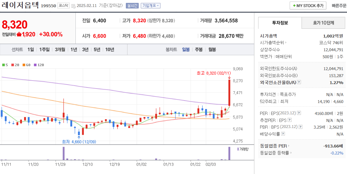 오늘 상한가 이유로는 세계 최초로 개발한 삼파장 레이저 시스템이 미국 FDA 승인 이슈가 나오면서