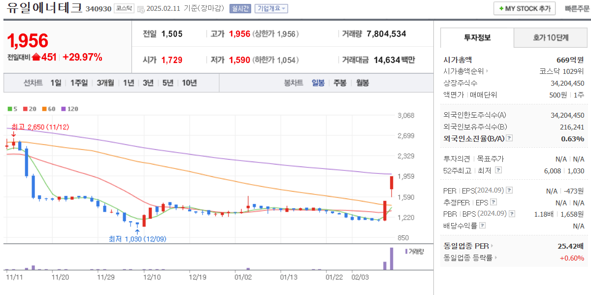 어제에 이어서 오늘도 상한가 마감을 함. 상한가 이유로는 현대차가 전고체 배터리 자체 생산이슈에 따른