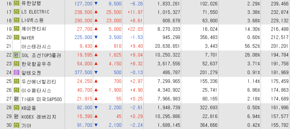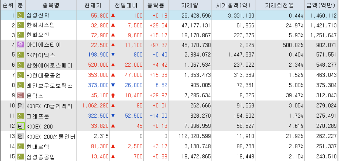 오늘도 시장에서 양시장 합해서 20조 원 넘는 거래대금이 나왔고 상승하고 있습니다.