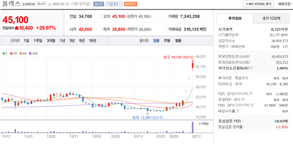 상한가 이유로는 메타 퓨리오사 AI 인수 이슈로 동반 상한가 마감.