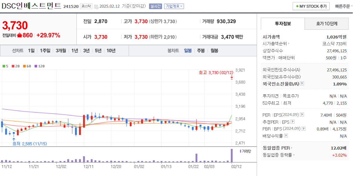 시총이 작은 종목이고 변동성이 클 수 있는 종목임. 역시 테마와 수급을 잘 보면서 대응을 해야 할 듯.