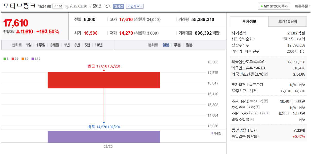 개별이슈  = 모티브링크(193.5%)- 신규상장주