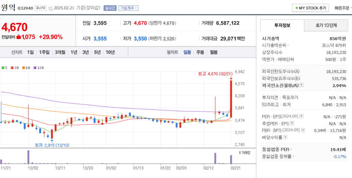 오늘 장후반 14시 넘어서 급등 상한가 마감을 함. 상한가 이유로는 자회사의 원익로보틱스가 미국의
