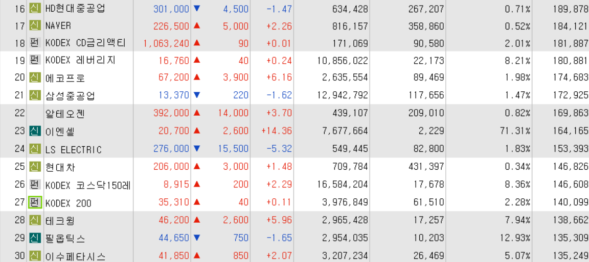 거래대금은 8조 77억 원으로 2조원 넘게 줄어듦. 확실히 금요일이라 줄어들었음.