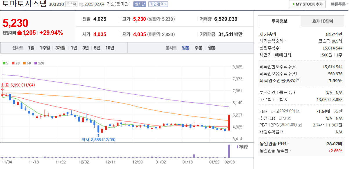 오늘의 주식 시장 정리(2월 4일 화요일 주식 상한가 종목 및 특징주)
