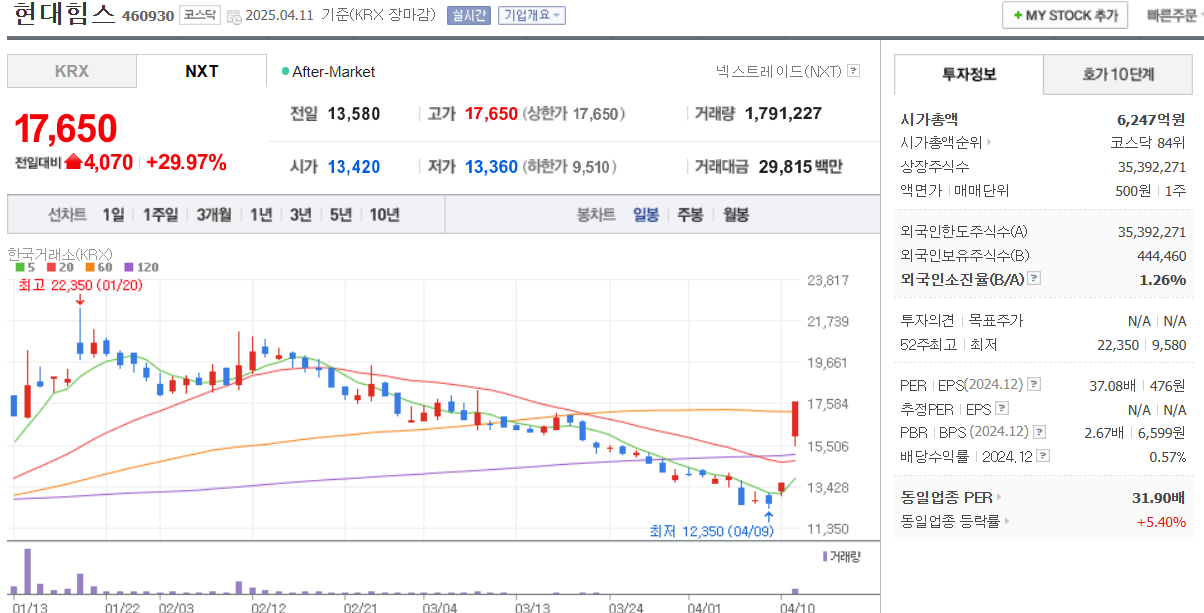 | 오늘의 주식 시장 정리(4월 14일 주식 상한가 종목 및 특징주) (2) | 2025.04.14 |