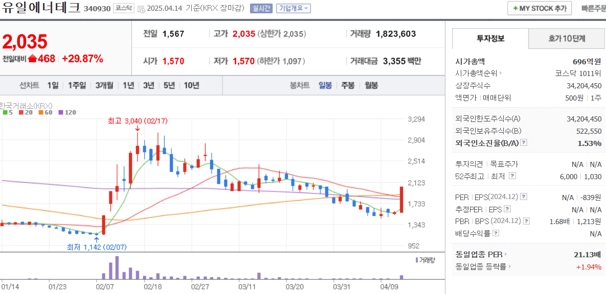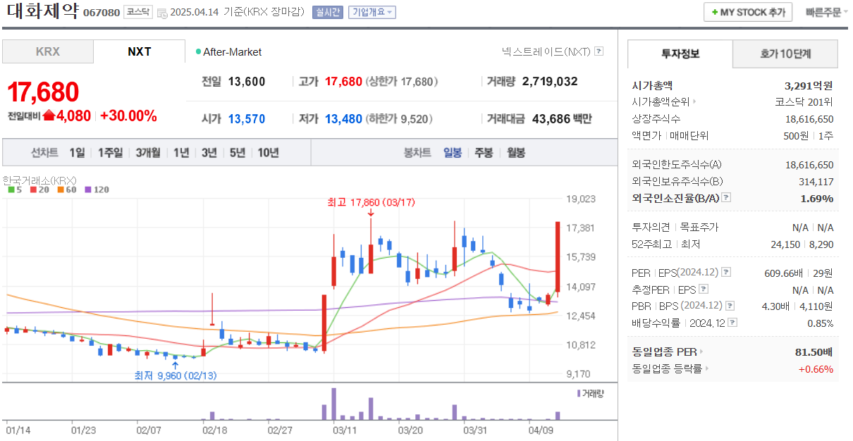 | 오늘의 주식 시장 정리(4월 15일 주식 상한가 종목 및 특징주) (2) | 2025.04.15 |