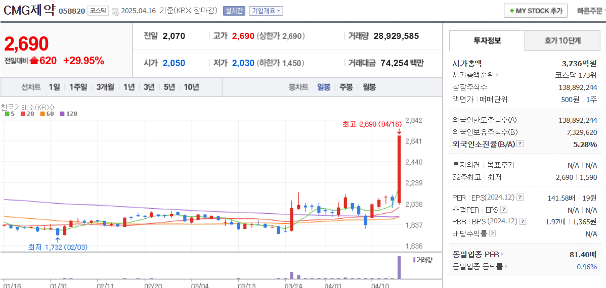 | 오늘의 주식 시장 정리(4월 14일 주식 상한가 종목 및 특징주) (2) | 2025.04.14 |