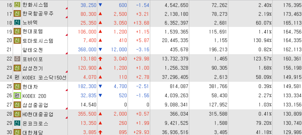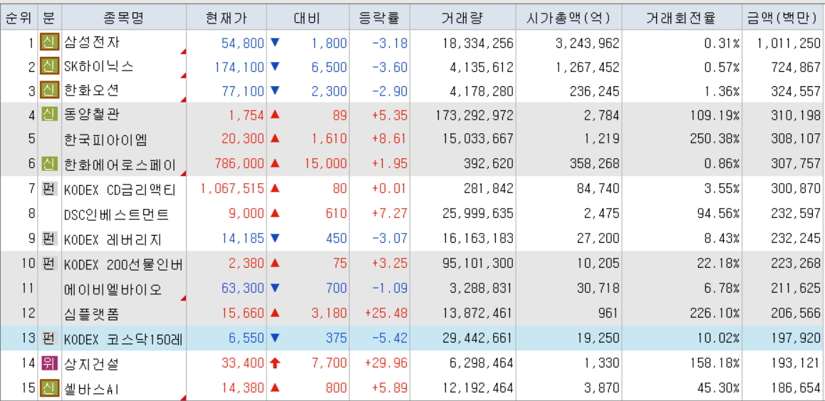 거래대금은 6조 6662억 원으로 어제 보다 소폭 늘어남.