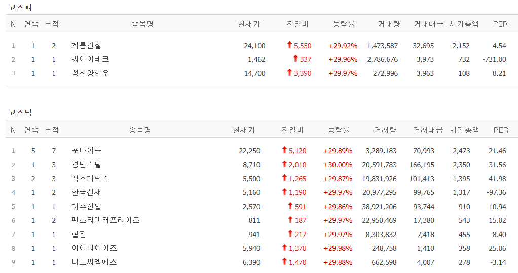 오늘의 주식 시장 정리(4월 18일 주식 상한가 종목 및 특징주)