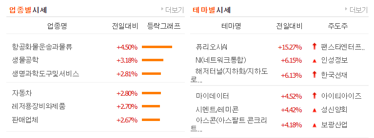 방산, 원전, 제약바이오가 상승을 보였고 , AI 관련주 ,정치 테마주가 크게 상승하면서 상위에 올랐음.